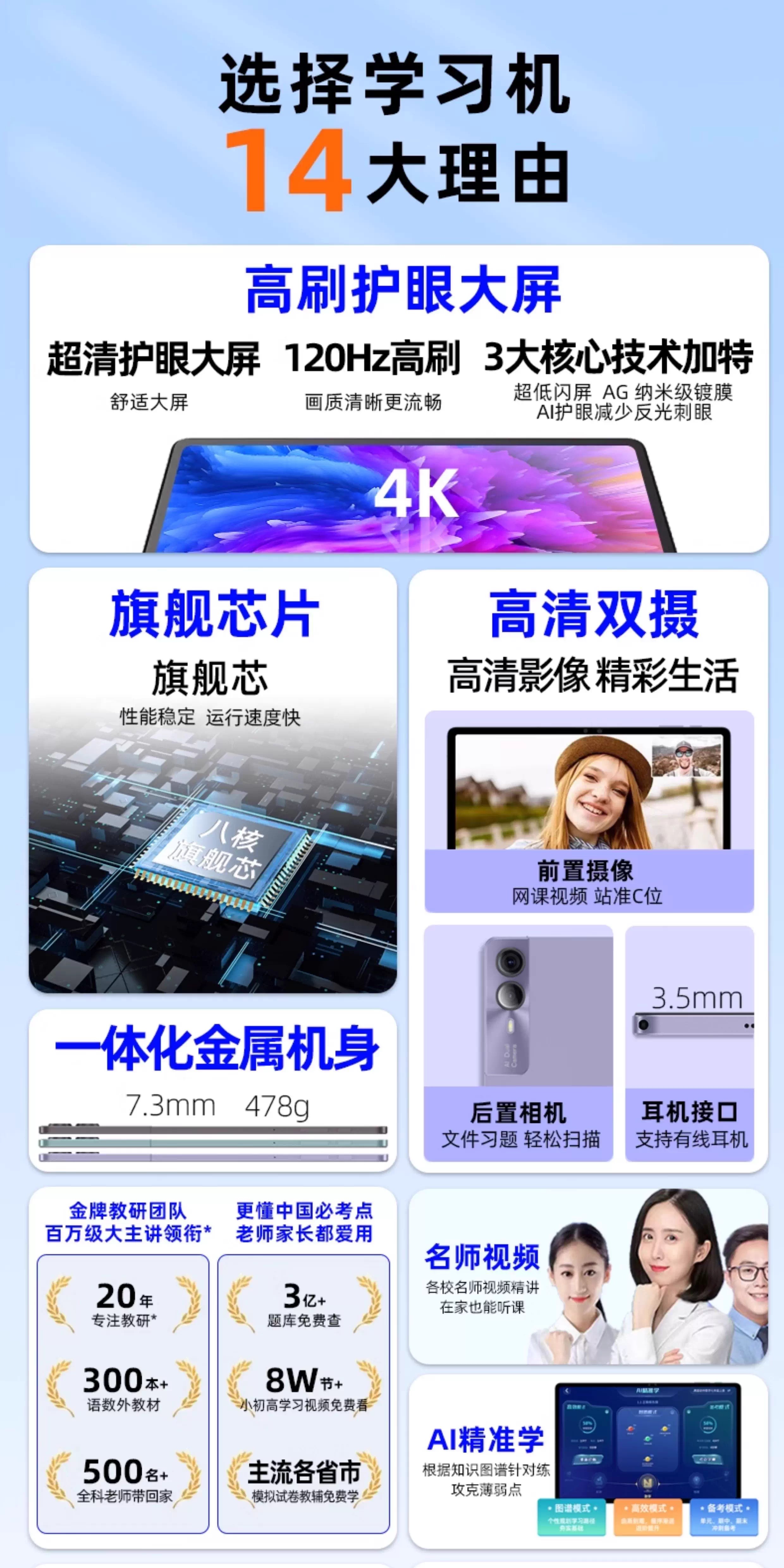 Genius children's learning machine tablet computer two-in-one kindergarten to primary school to high school courses all-round simultaneous learning training machine 2025 new model 3-6-12 years old students dedicated early childhood education machine 10G+256G 2.5K ultra-clear eye protection + luxury gift pack 11 English