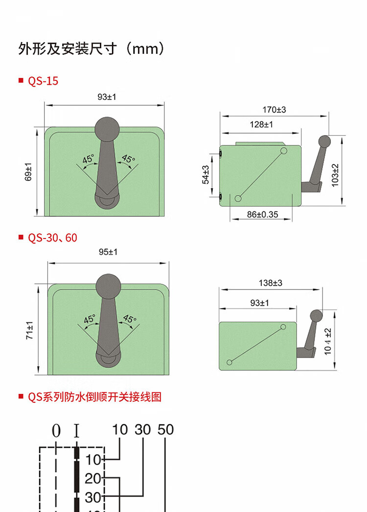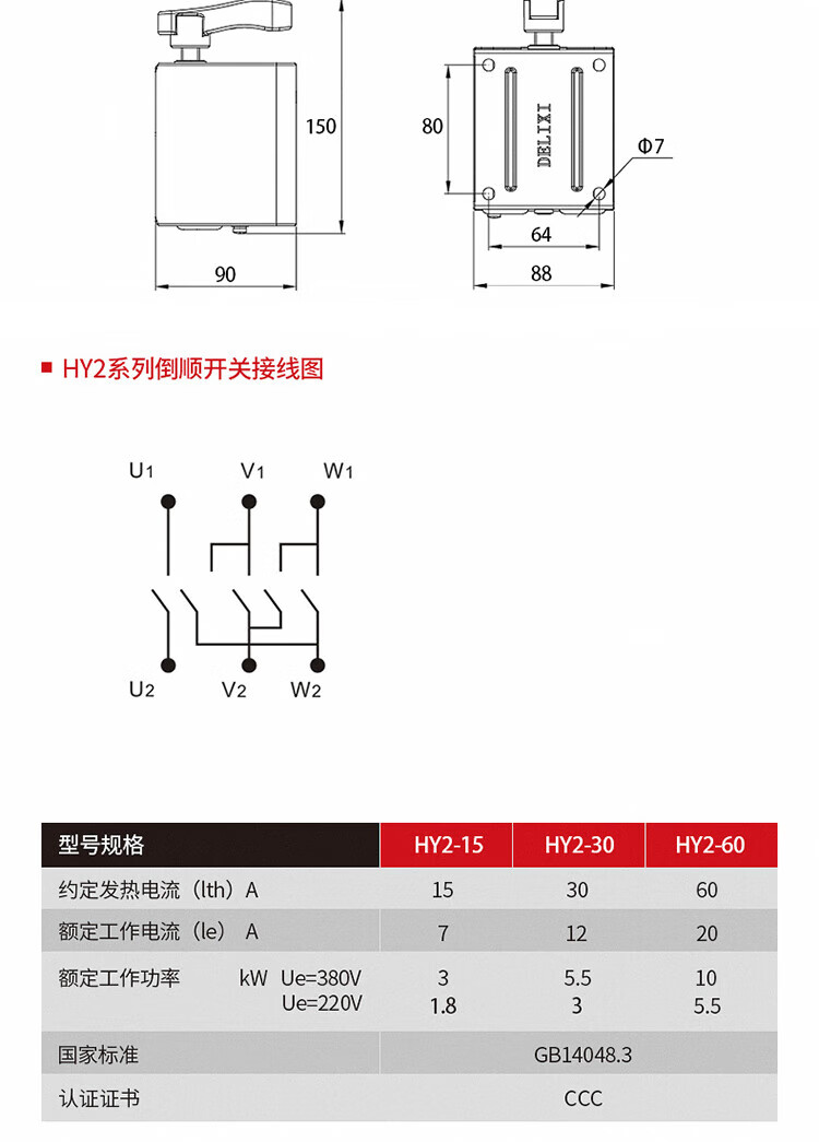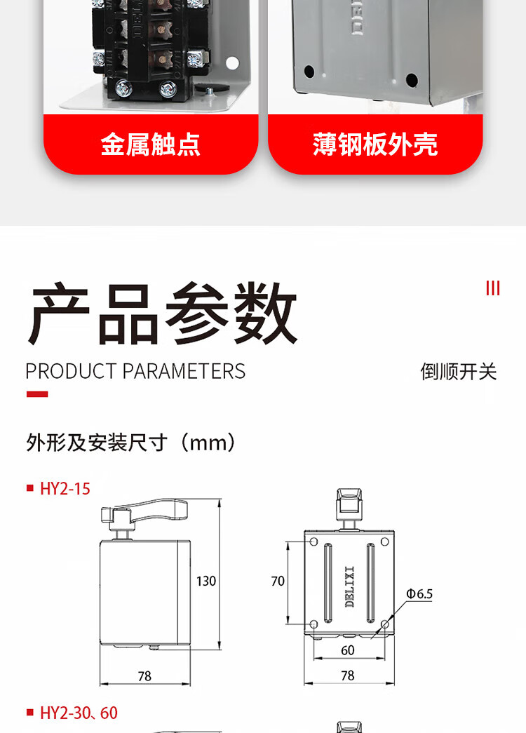 Delixi reverse switch HY2-15A 220V single 380V three-phase QS-30 waterproof motor forward and reverse switch HY2-60A (pack of thirty)