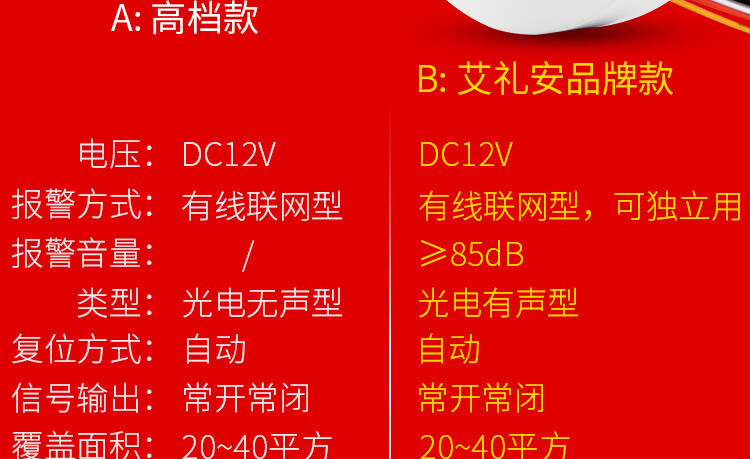 Alarm 12V networked smoke detector wired switch 24V temperature sensor B Allian brand model normally open and normally closed adjustable