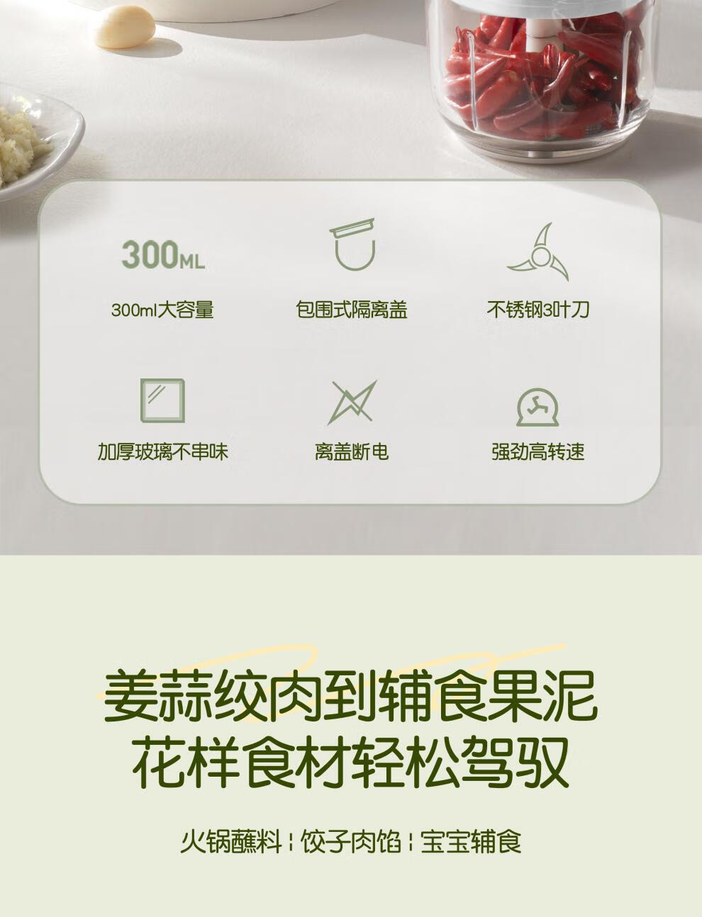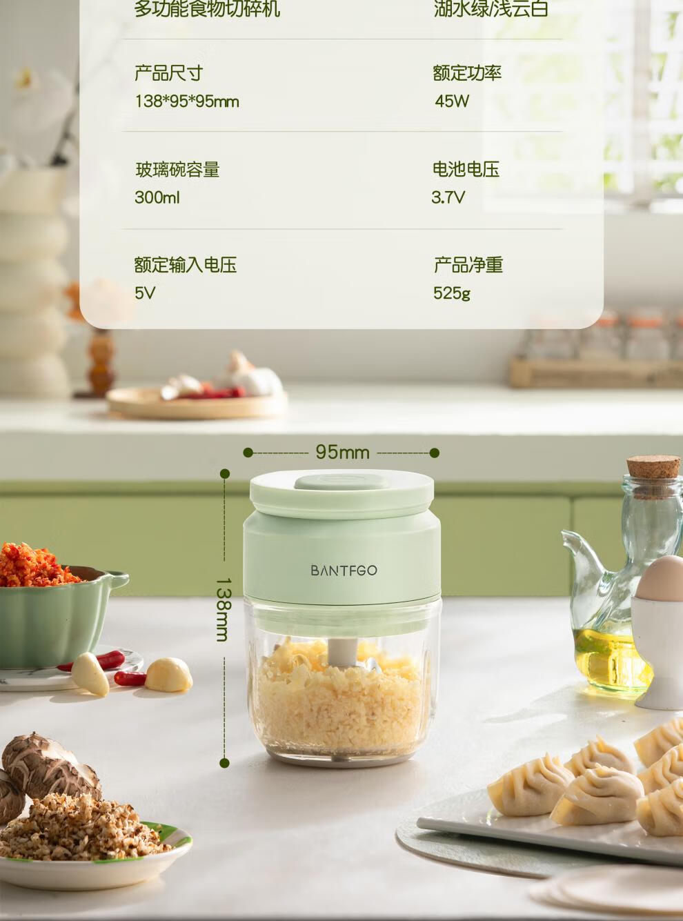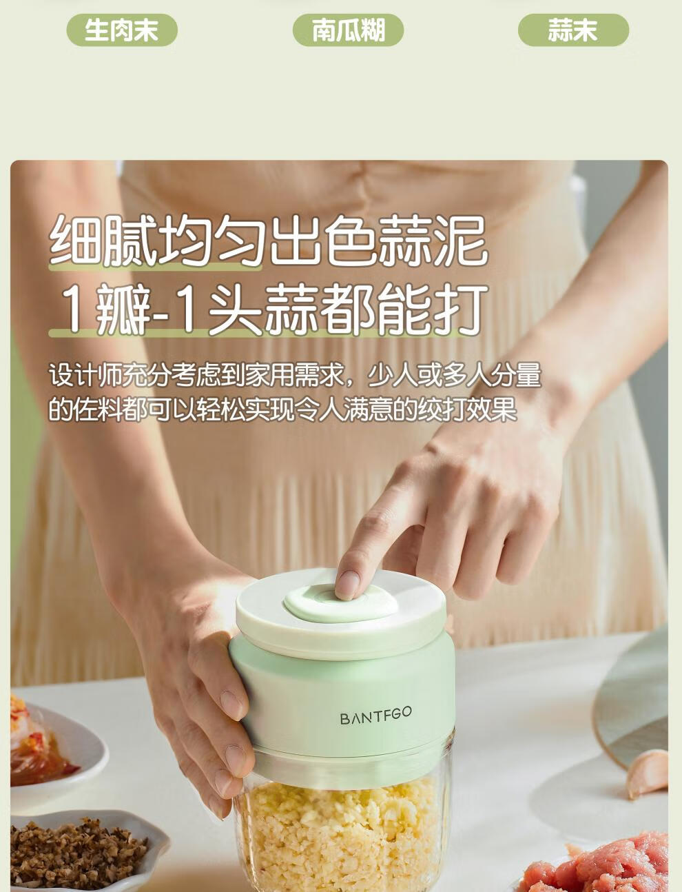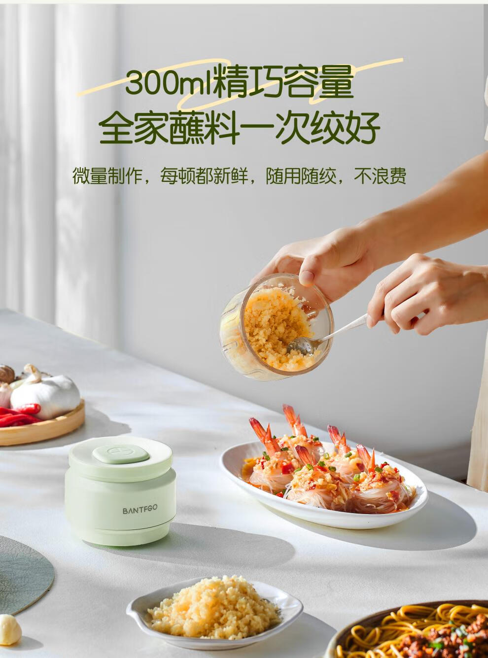 Yishan imported high-quality garlic artifact from Germany, garlic pounder, electric garlic grinder, small household press, Lake Water Green