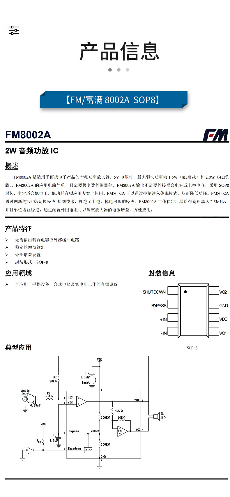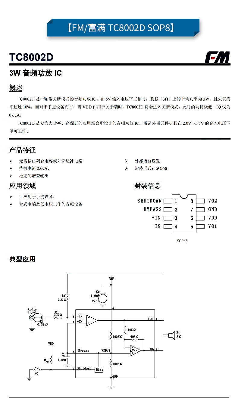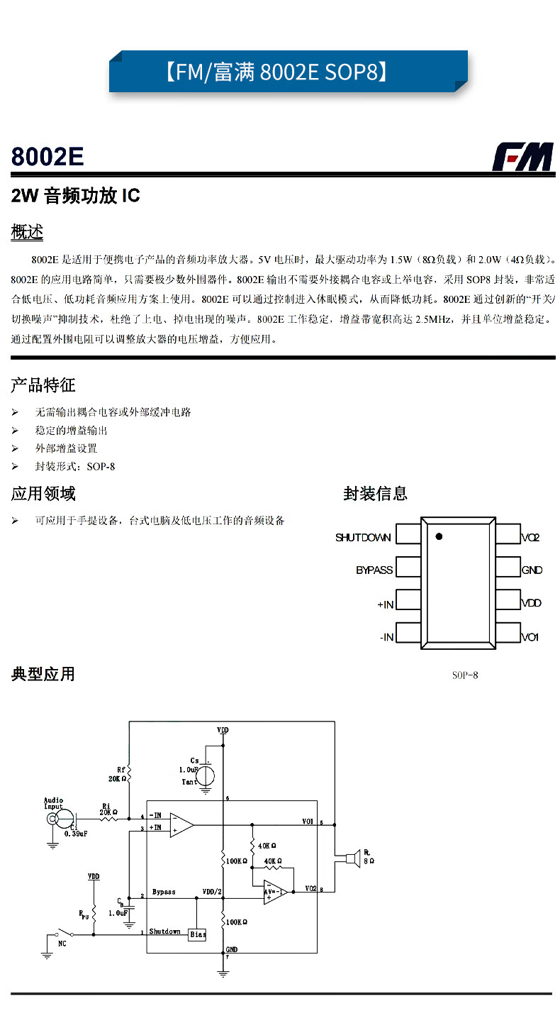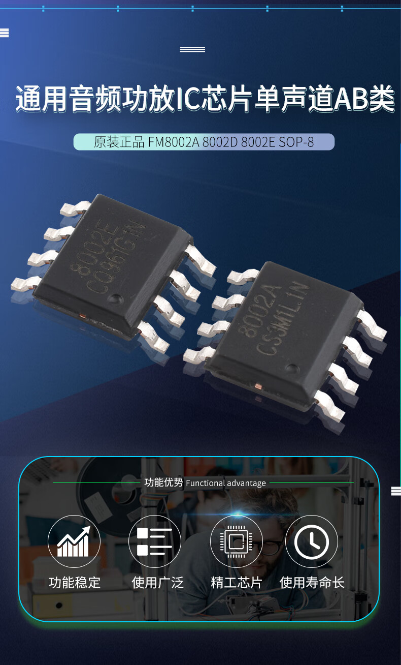 Original genuine FM8002A8002D8002E SOP-8 universal audio power amplifier IC chip mono channel AB FM/Fuman TC8002DSOP8 (5 pieces) No Specifications