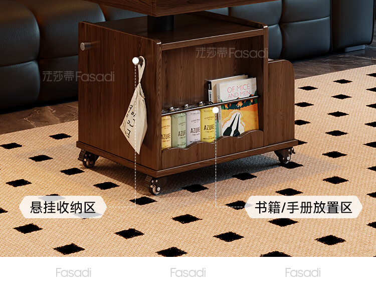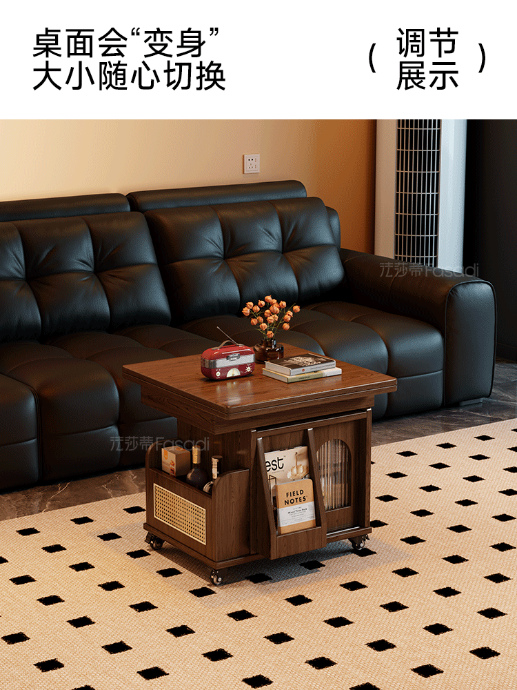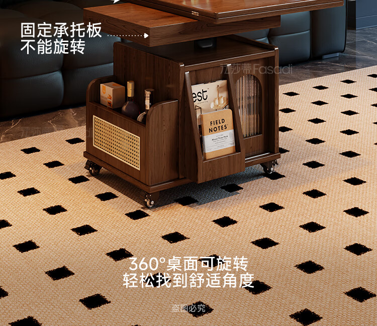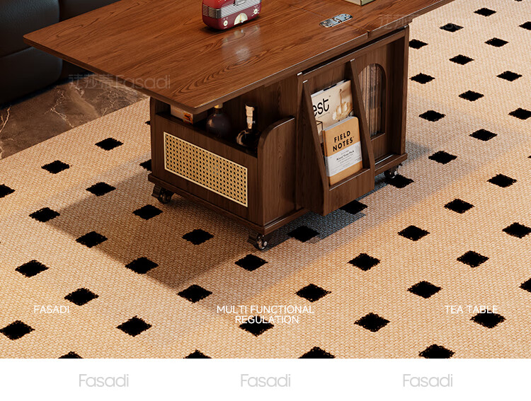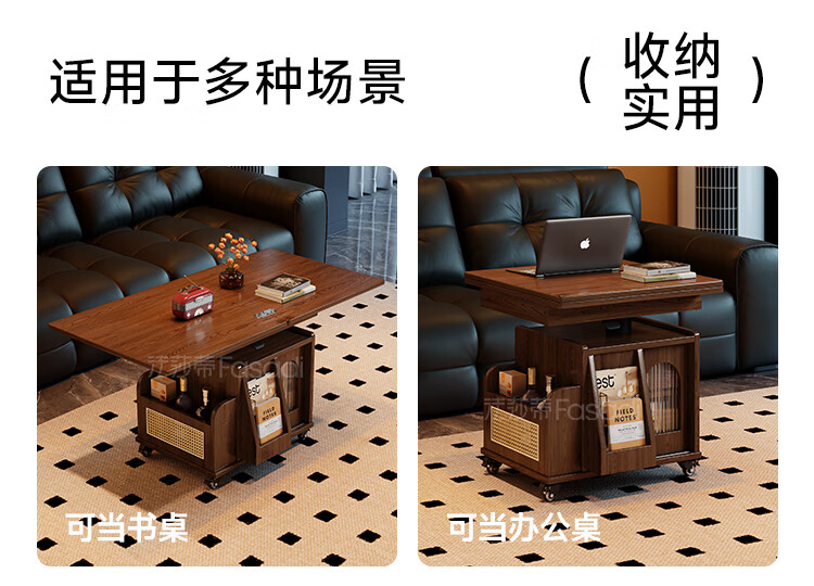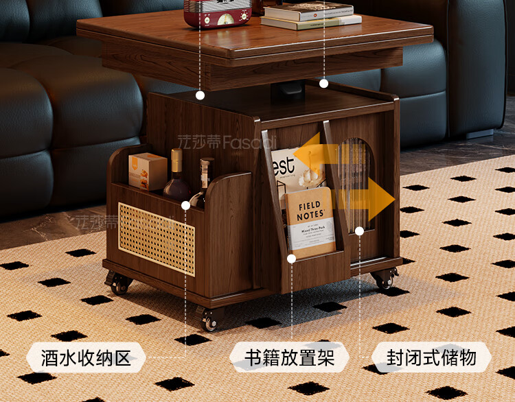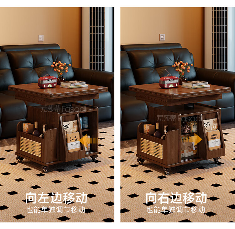 Fasati lifting coffee table folding mobile cart solid wood tea table tea table small apartment living room multi-functional dining table walnut color movable lifting folding trolley side table