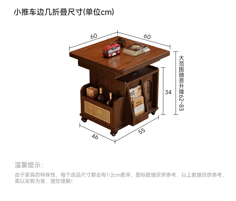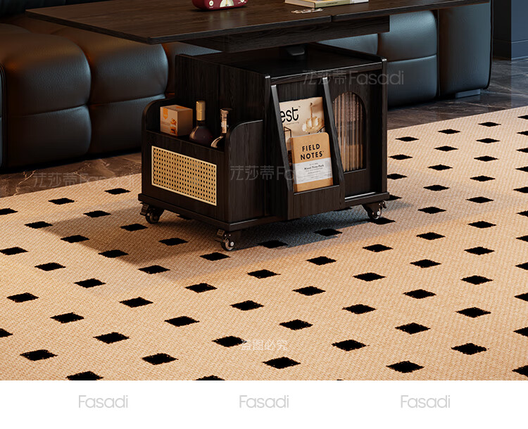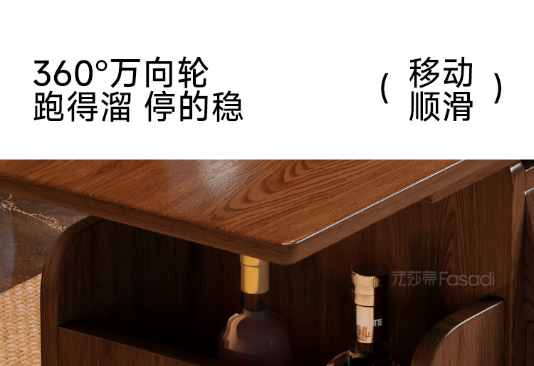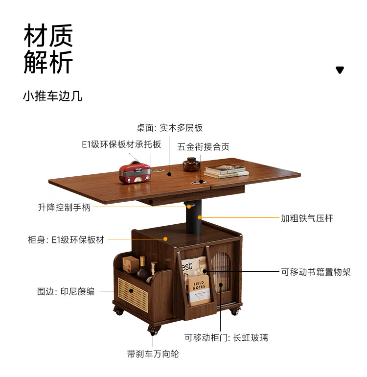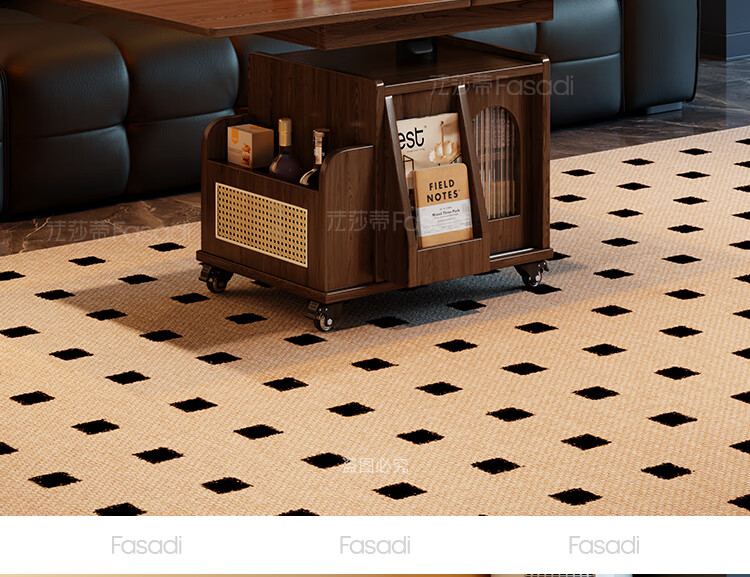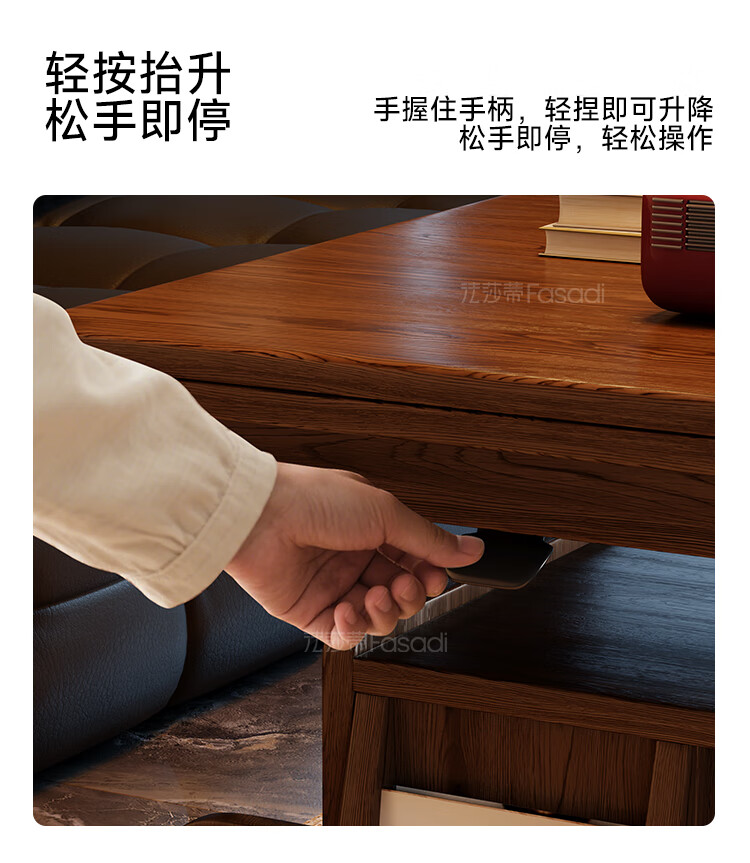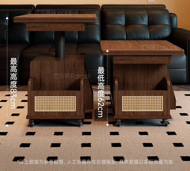 Fasati lifting coffee table folding mobile cart solid wood tea table tea table small apartment living room multi-functional dining table walnut color movable lifting folding trolley side table