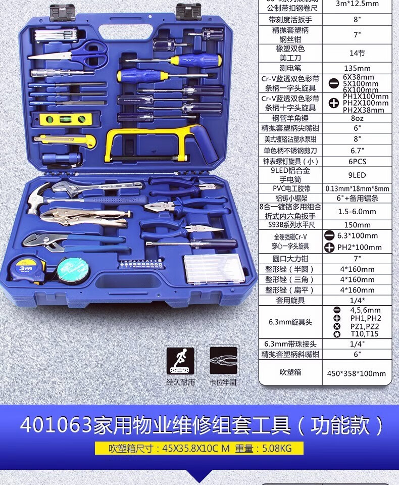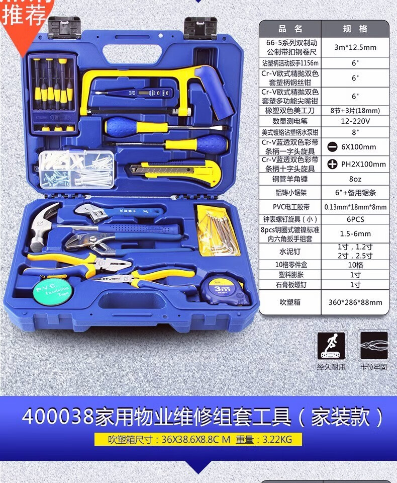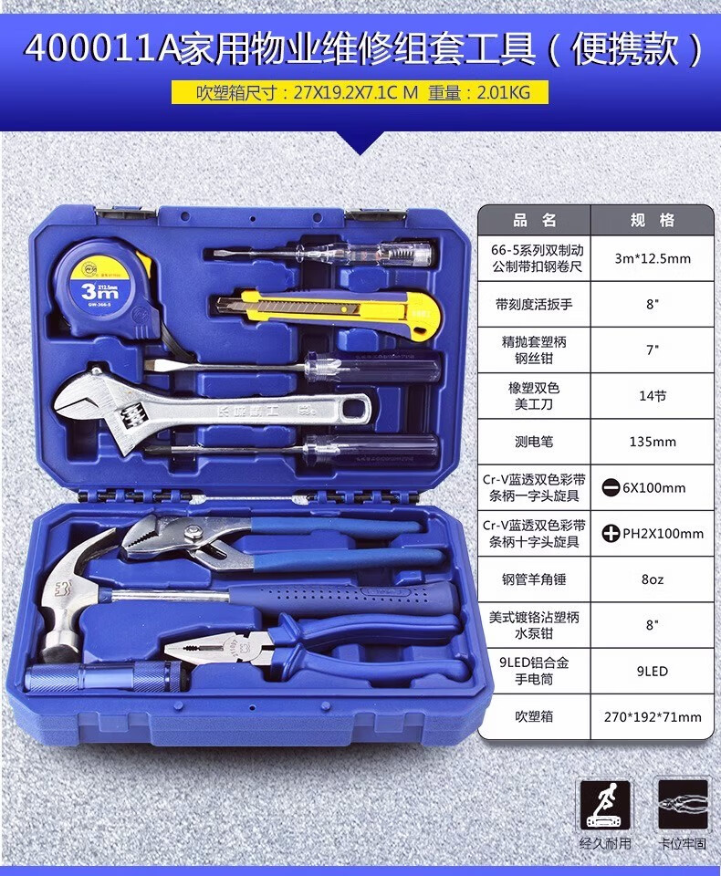 Great Wall Household Tool Box Set Hardware Tools Complete Set of Repair Combination Tools 11pcs Household Combination Tools