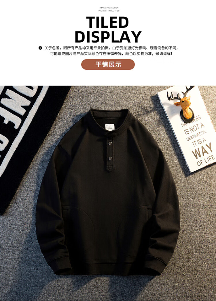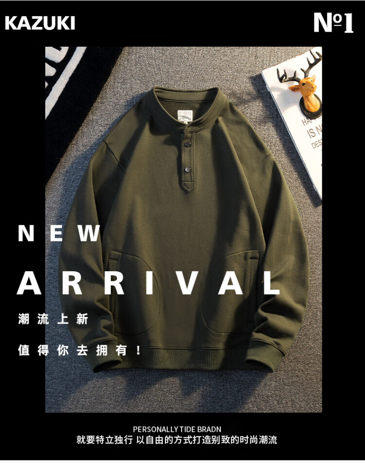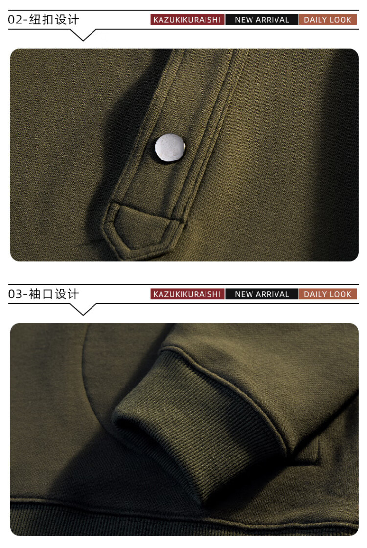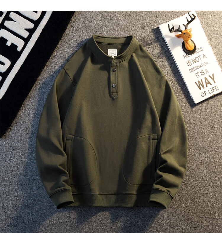 Kuraishi Kazuki Kuraishi Kazuki American retro loose heavy bottoming long-sleeved sweatshirt men's autumn and winter high-end Henley shirt top Army Green XL