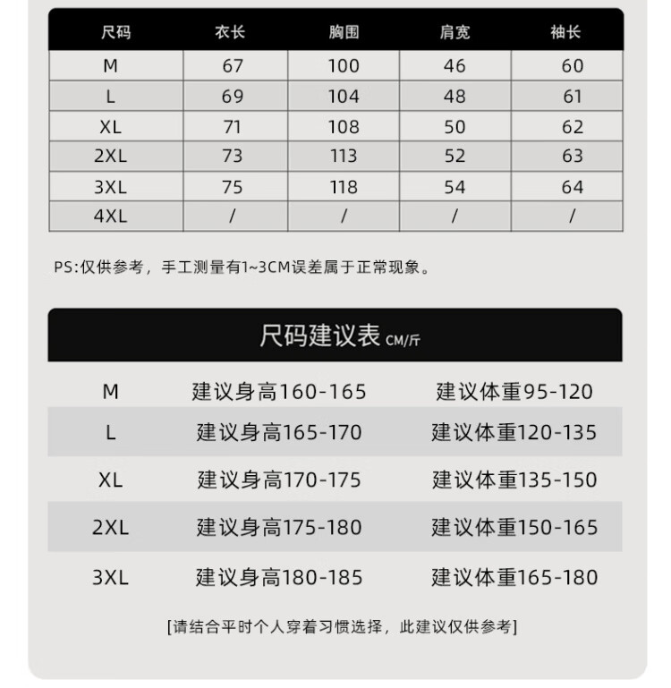 China (cm) 165 / 88-90 170 / 96-98 175 / 108-110 180 / 118-122 185 / 126-130