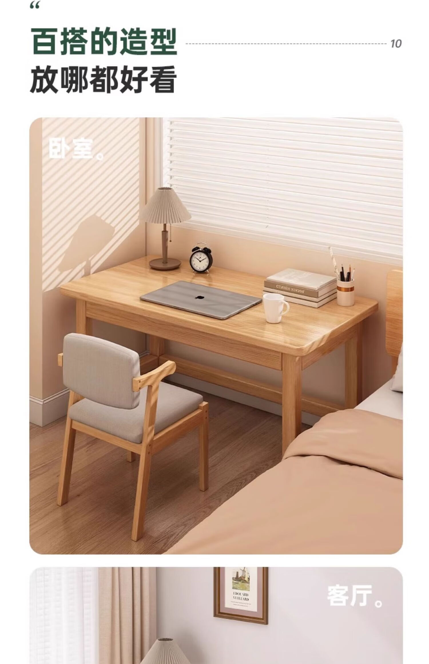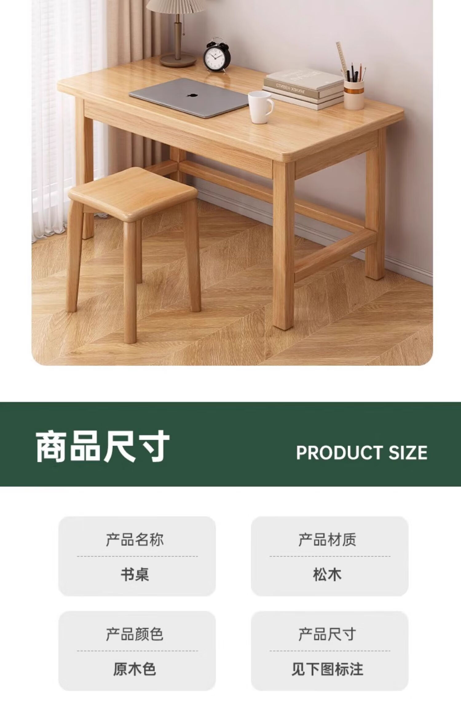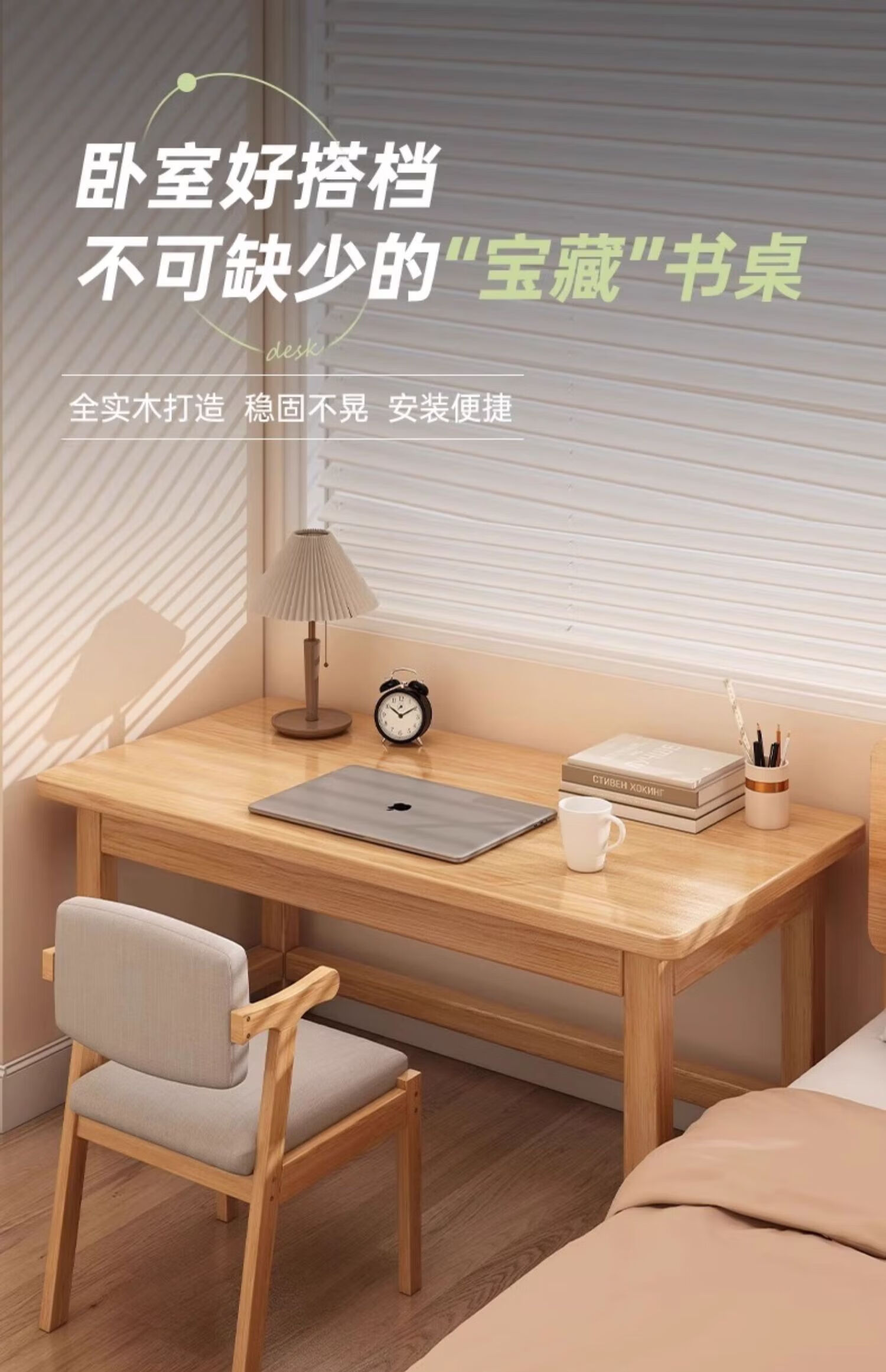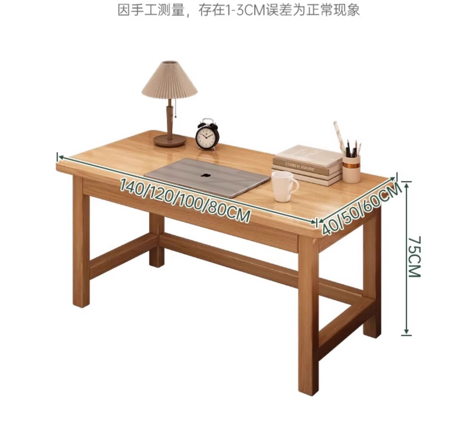 Solid wood desk, student study desk, home bedroom computer desk, simple rectangular workbench, office desk, all solid wood varnish, wood color 60*40CM