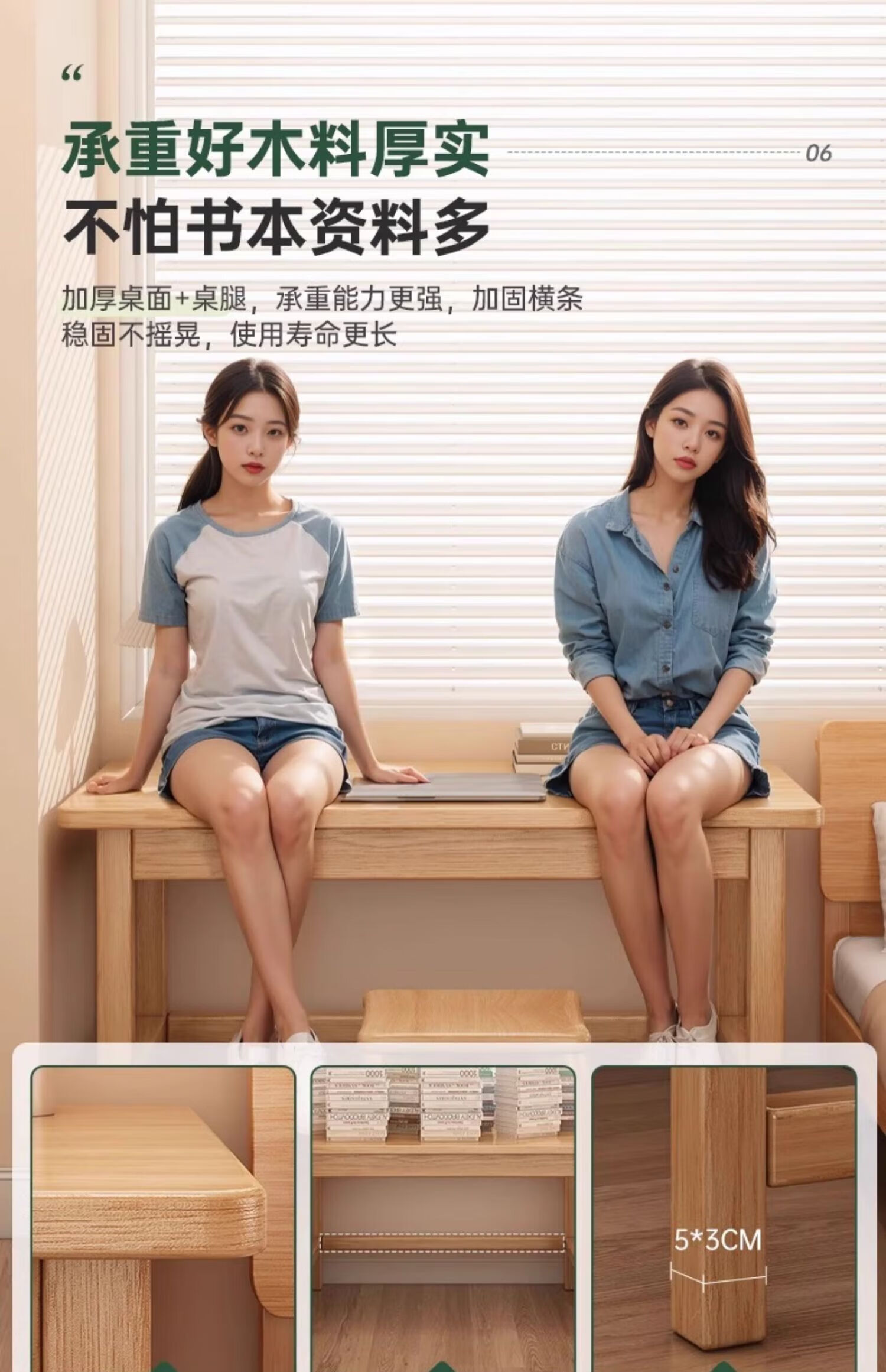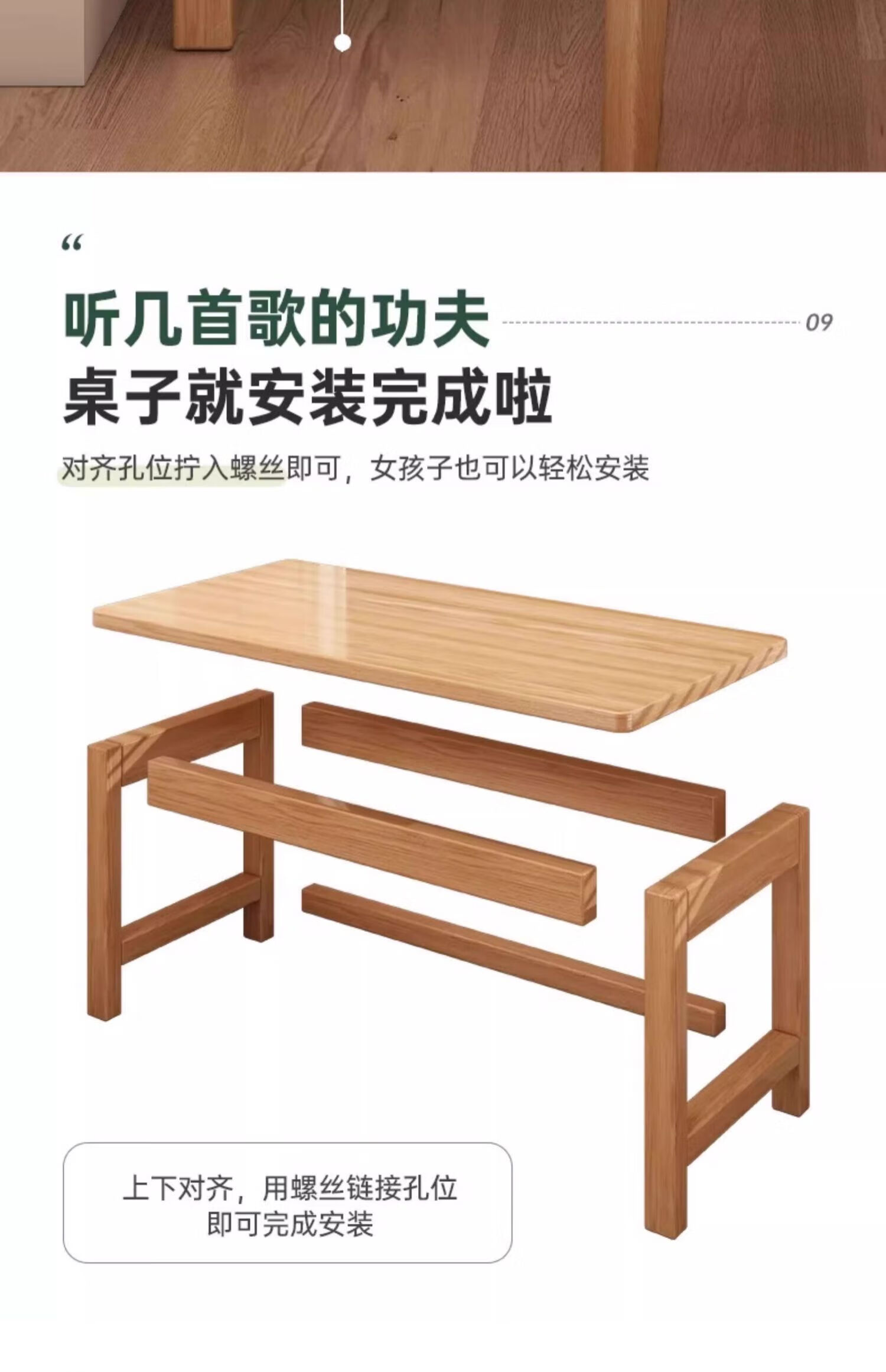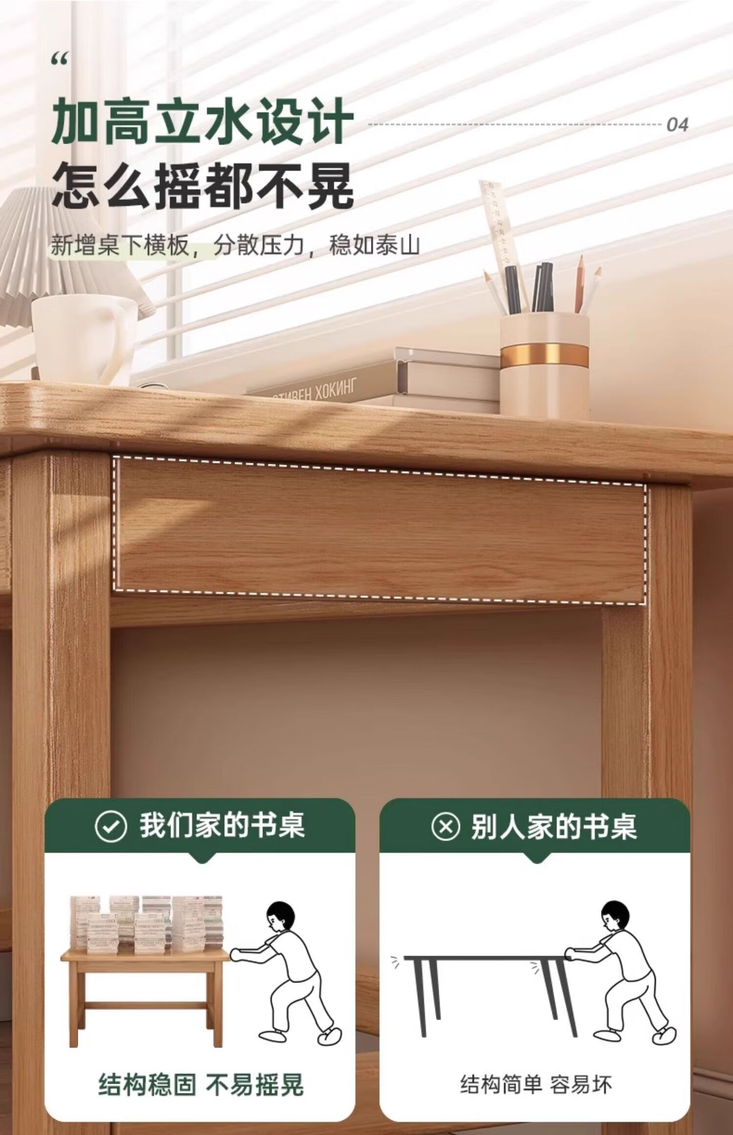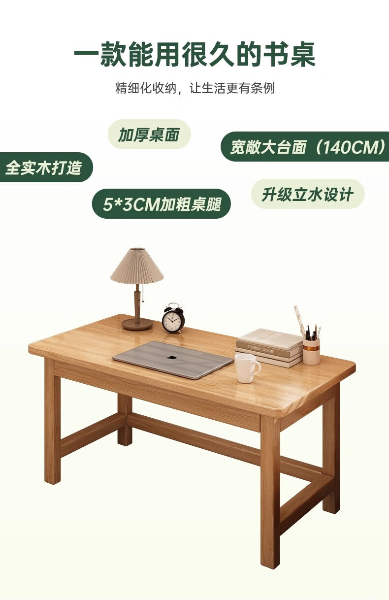 Solid wood desk, student study desk, home bedroom computer desk, simple rectangular workbench, office desk, all solid wood varnish, wood color 60*40CM