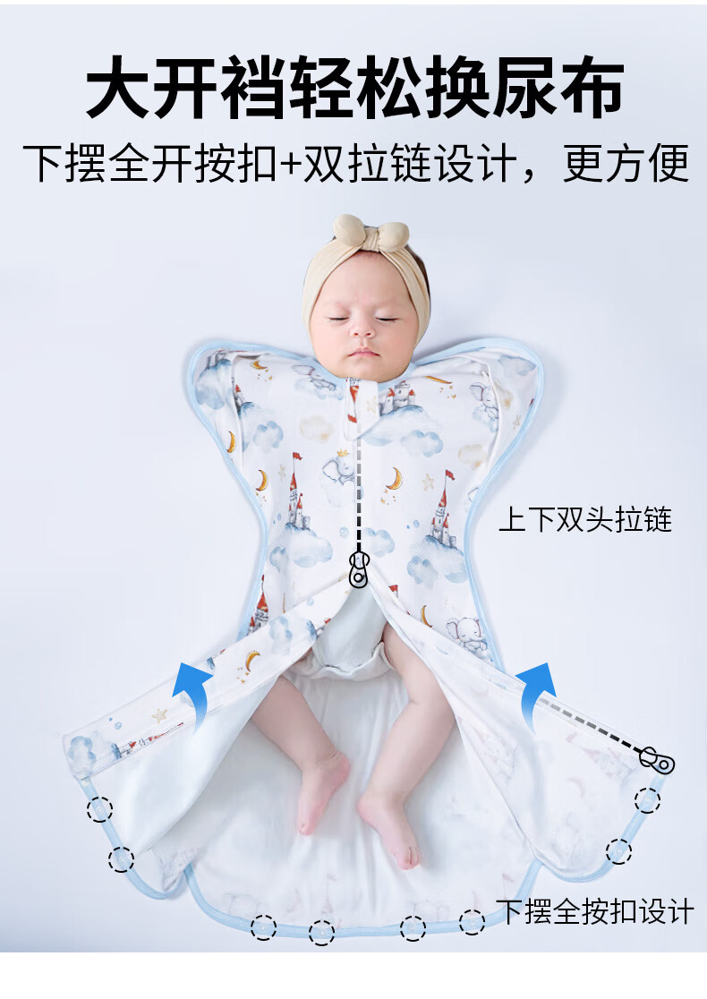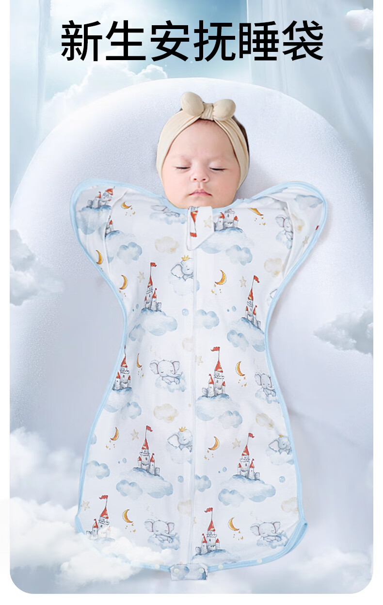 Racon newborn baby surrender-style anti-jump sleeping bag spring and autumn baby artifact all-season pure cotton anti-kick quilt Sky Castle-65*28cm recommended 60-70cm 10-18Jin Jin equals 0.5 kg baby