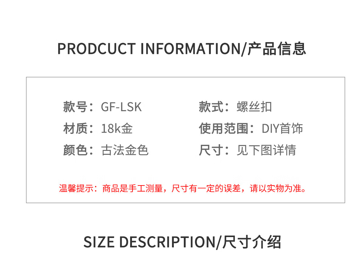 Juke 18k gold ancient method screw buckle gourd finishing buckle pearl necklace buckle connecting buckle diy accessories button head small waist gourd screw buckle about 0.4-0.52g