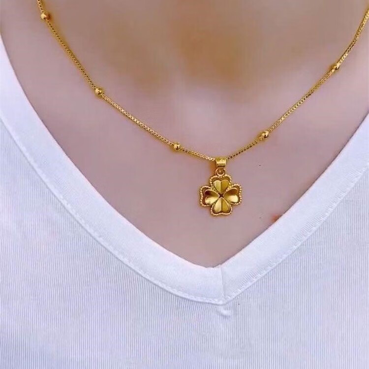 Qianjun Lao Fenghuang 999 Vietnamese sand gold four-leaf flower necklace has fashionable temperament, design, is hypoallergenic and does not fade for a long time. Lucky four-leaf flower necklace 3.4 Lao Fengxiang quality