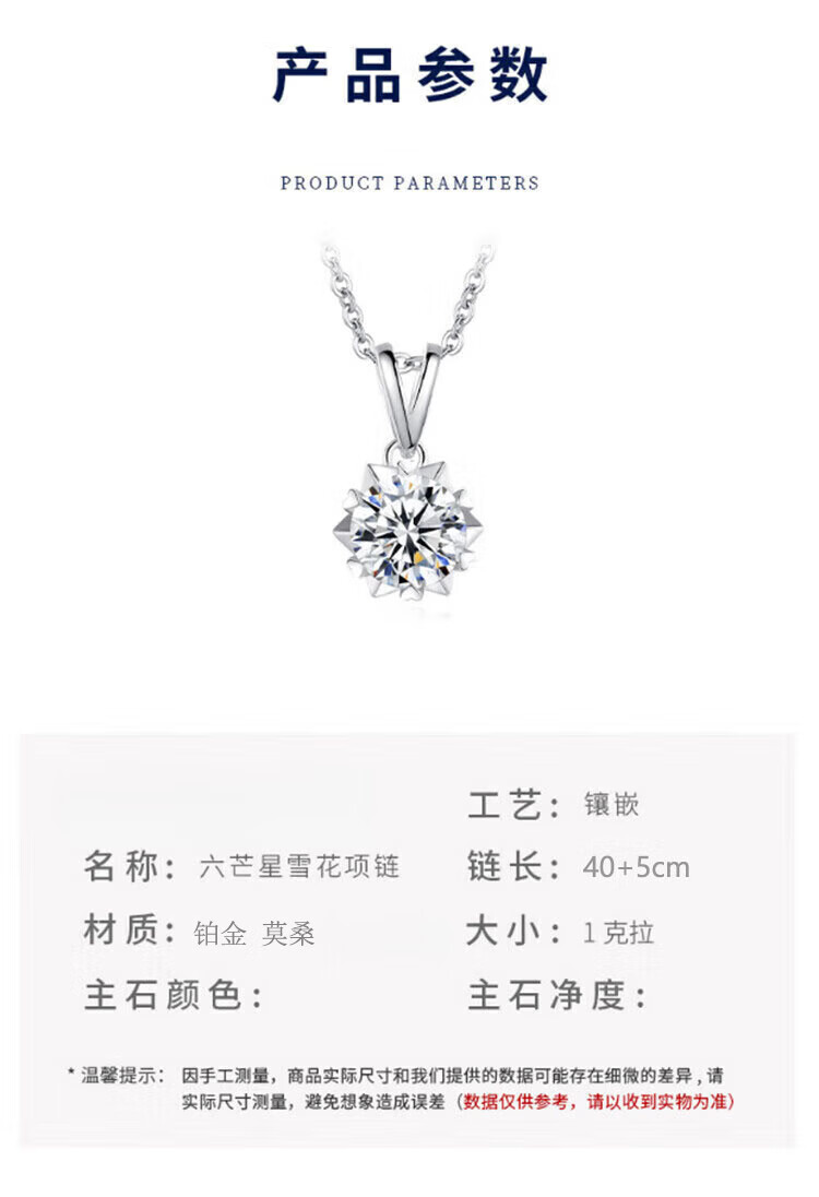 Chow Tai Sang platinum six-pointed star necklace for women, diamond snowflake pendant, moissanite platinum birthday gift for girlfriend, platinum snowflake necklace