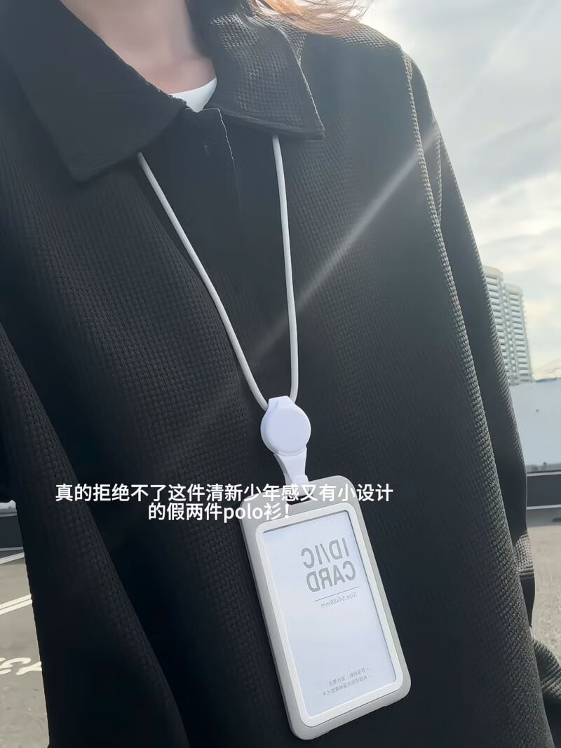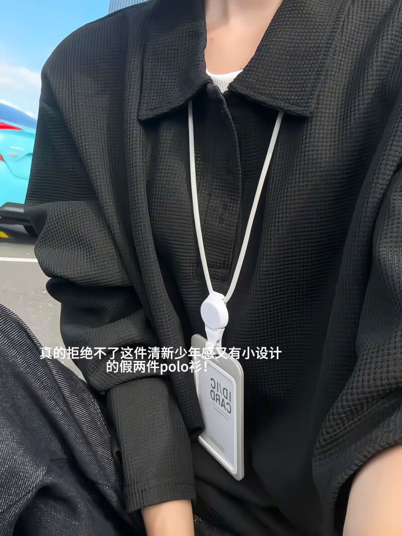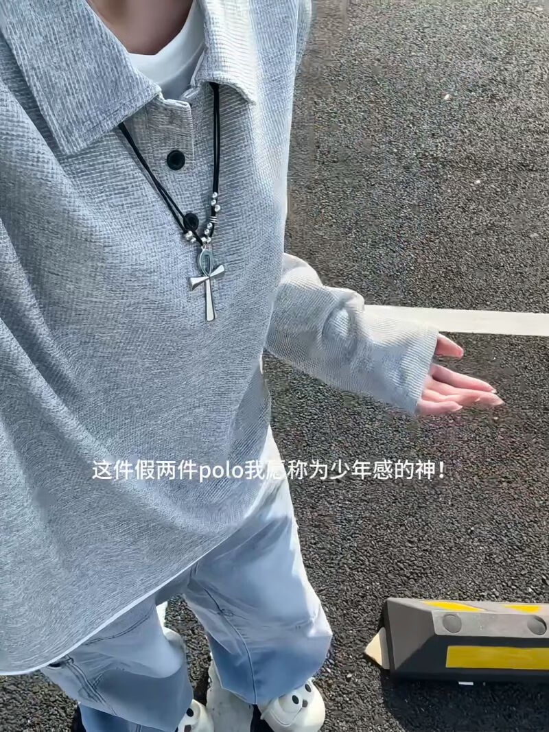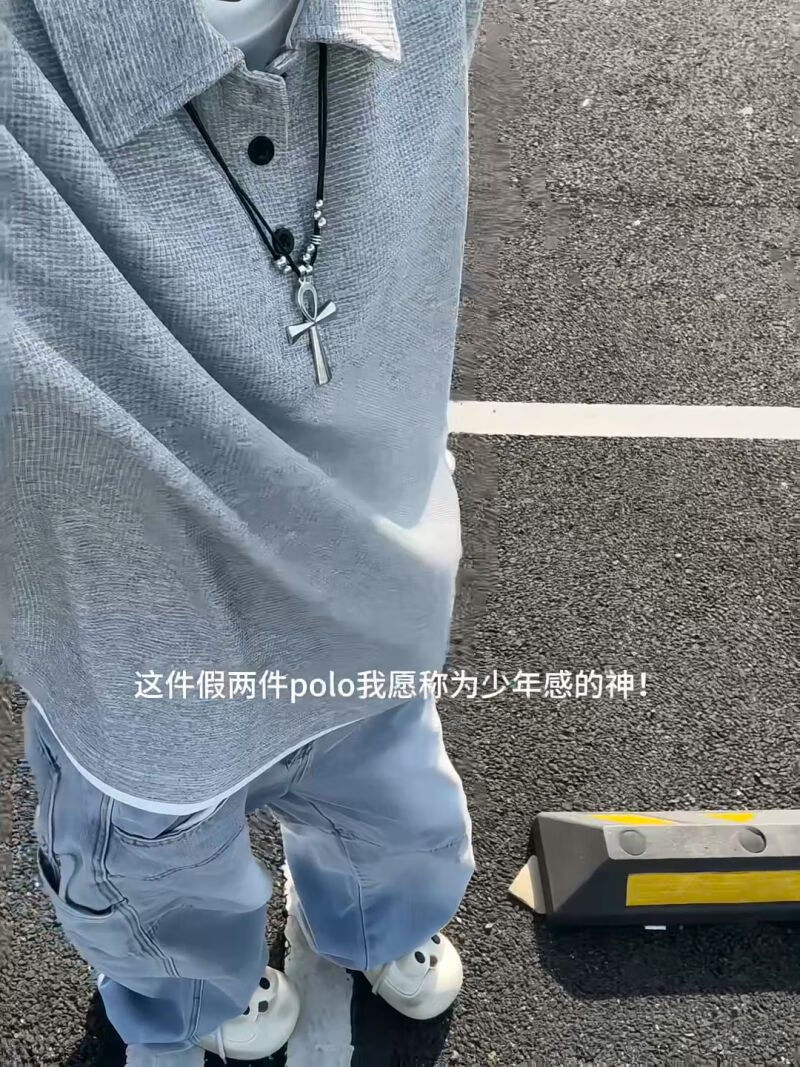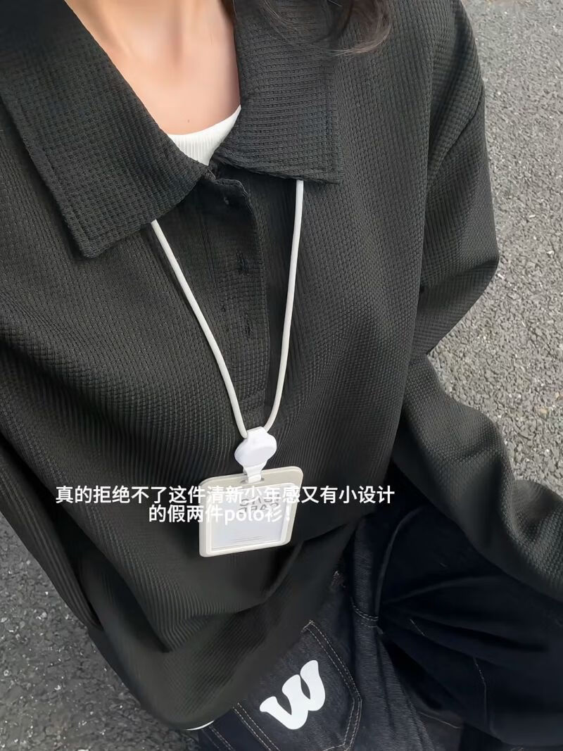 Unicorn Cool Henry Collar POLO Shirt Men's Autumn American Heavy Lapel Long Sleeve T-shirt Loose Casual Couple Outfit Gray M