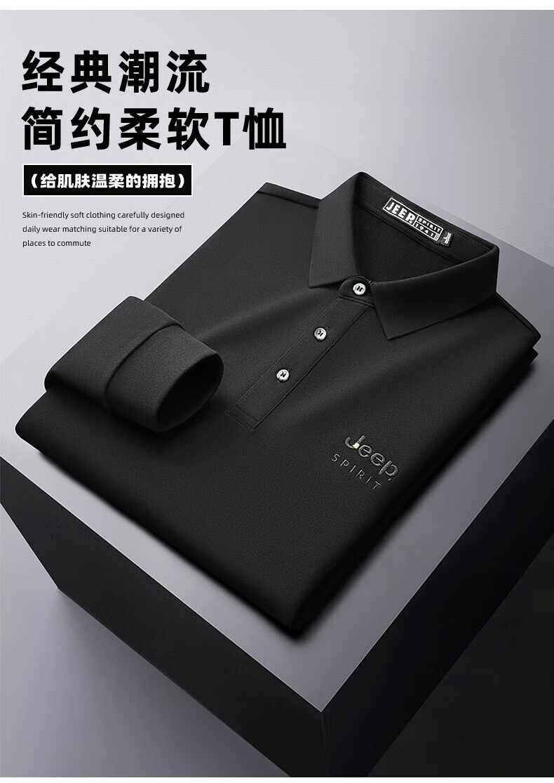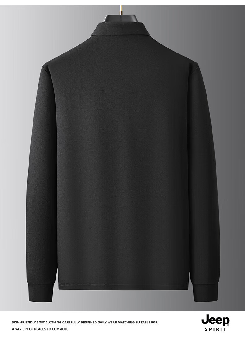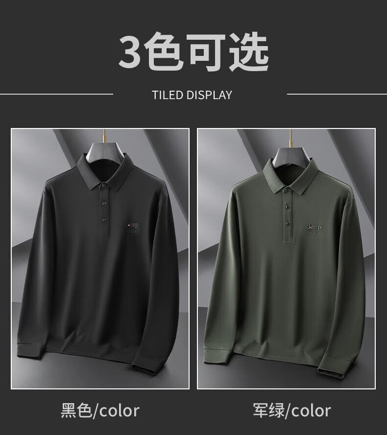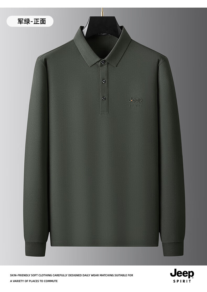 JEEP SPIRIT Jeep men's long-sleeved T-shirt autumn and winter new loose casual lapel T-shirt bottoming POLO shirt men's top Army Green XL