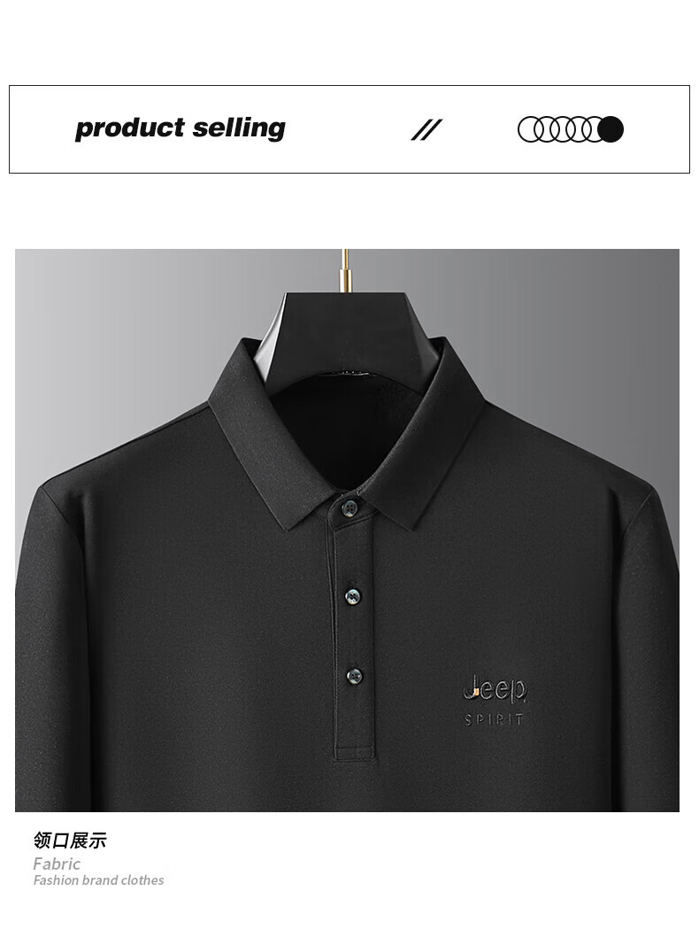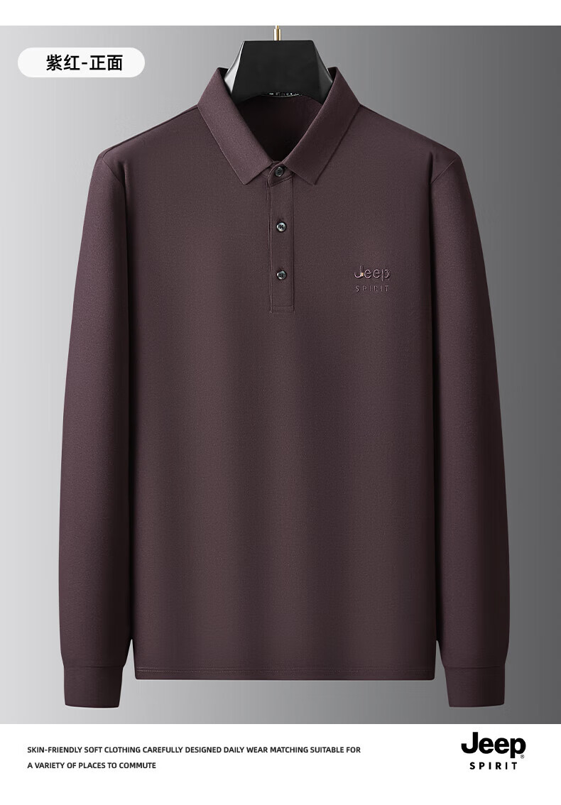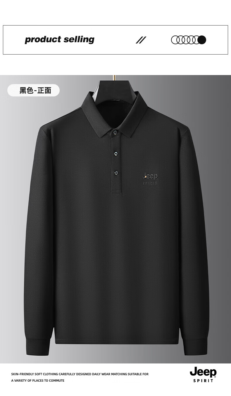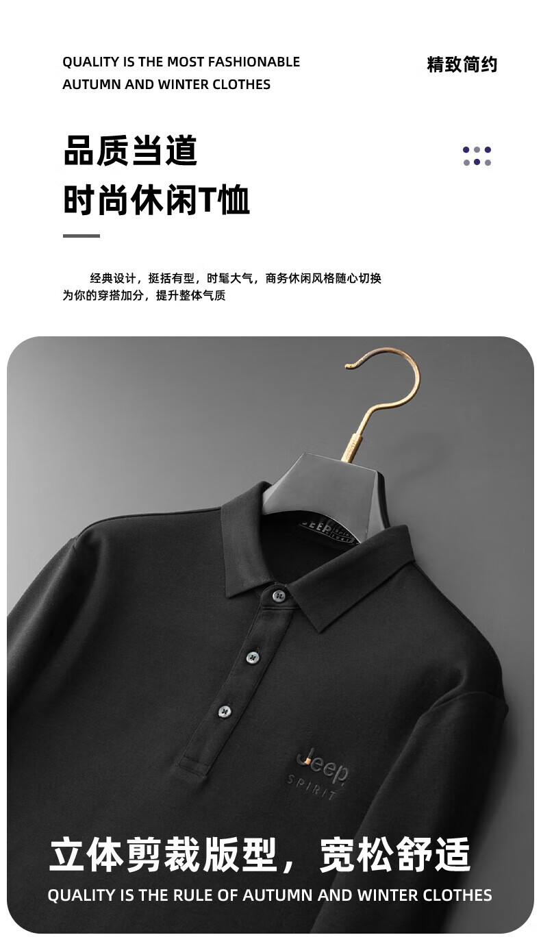 JEEP SPIRIT Jeep men's long-sleeved T-shirt autumn and winter new loose casual lapel T-shirt bottoming POLO shirt men's top Army Green XL