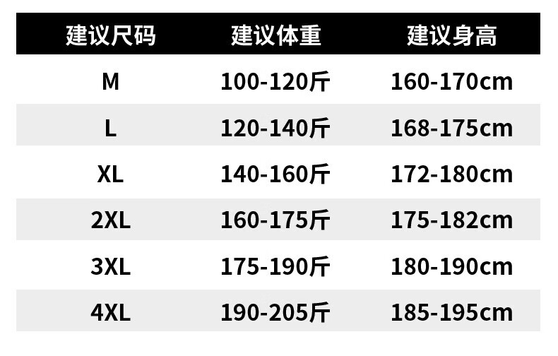 China (cm) 160-165/84-86 165-170 / 88-90 167-172 / 92-96 168-173 / 98-102 170-176 / 106-110
