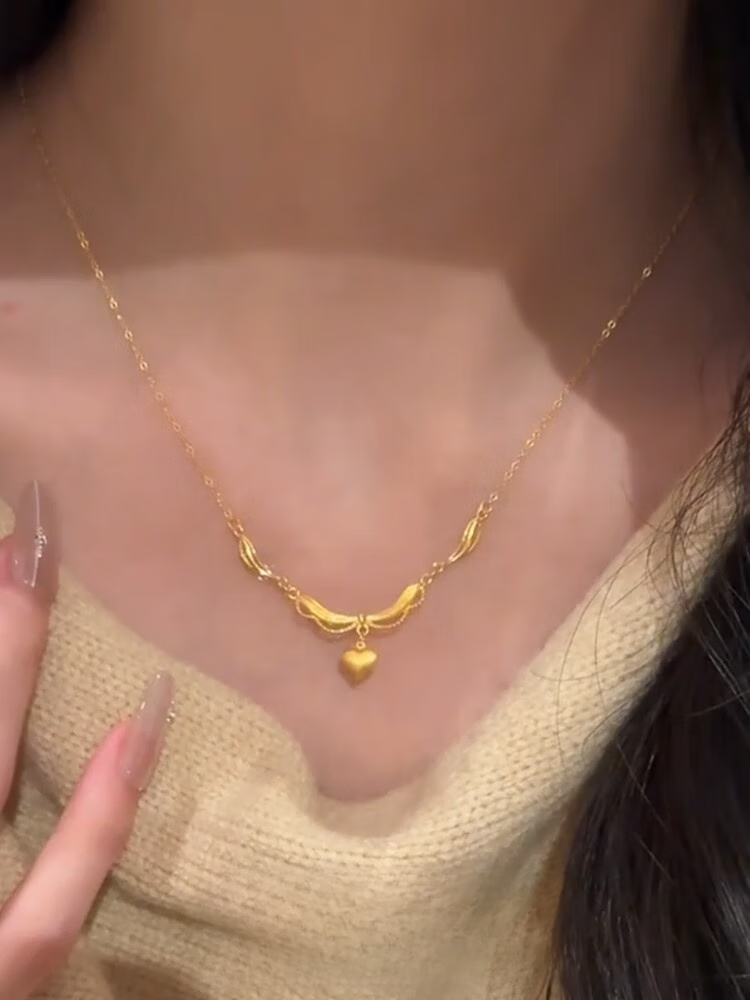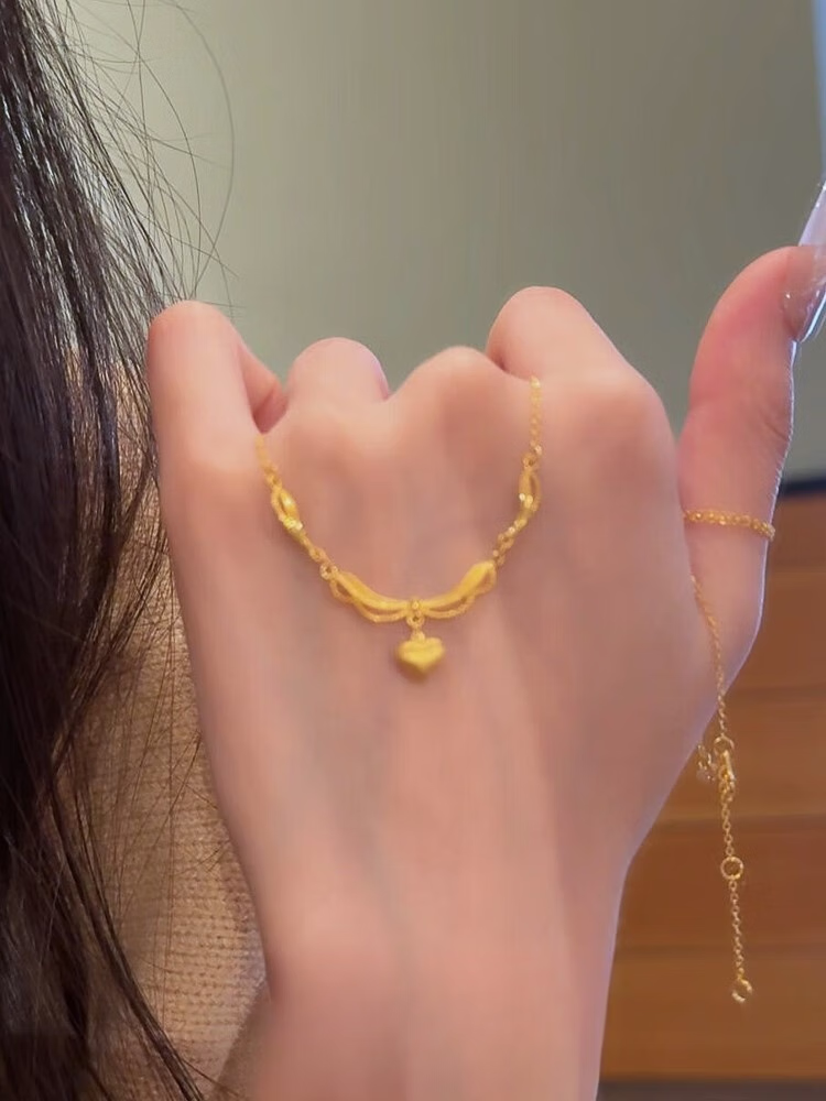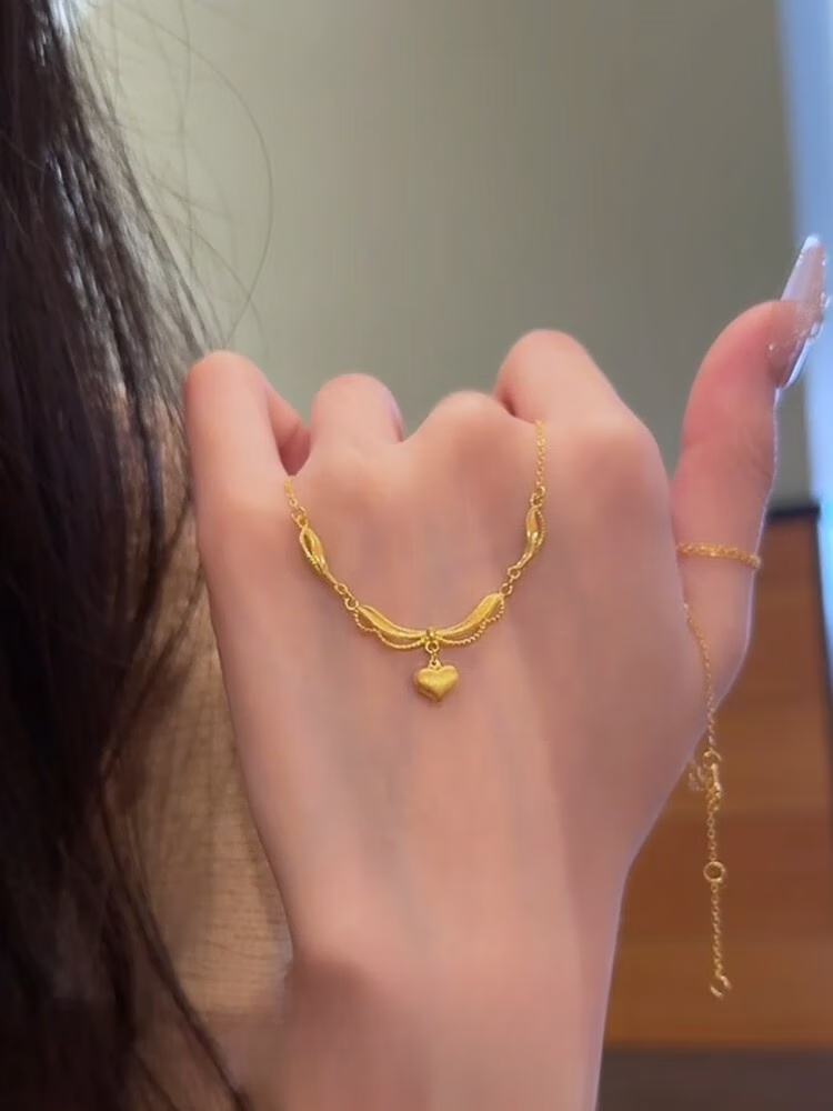 Ya Ge Lao Phoenix 999 heart-beating encounter sand gold non-fading gilt lace love pendant sweet niche clavicle chain gilt love clavicle chain single piece