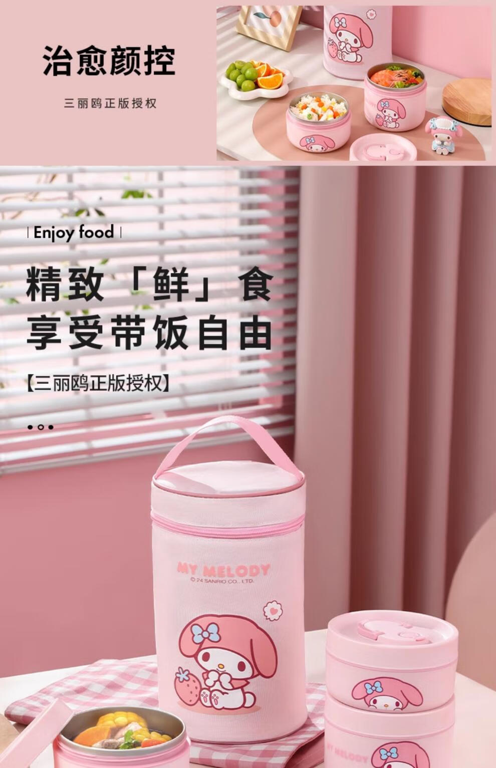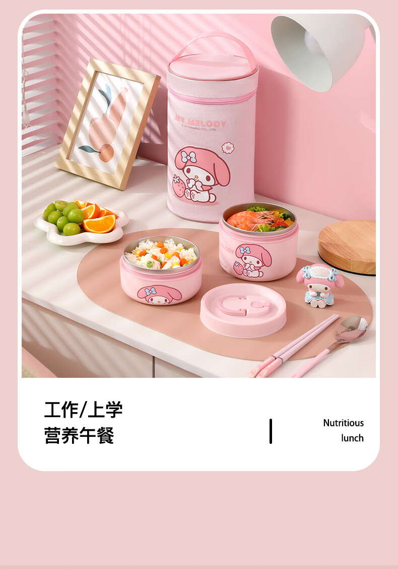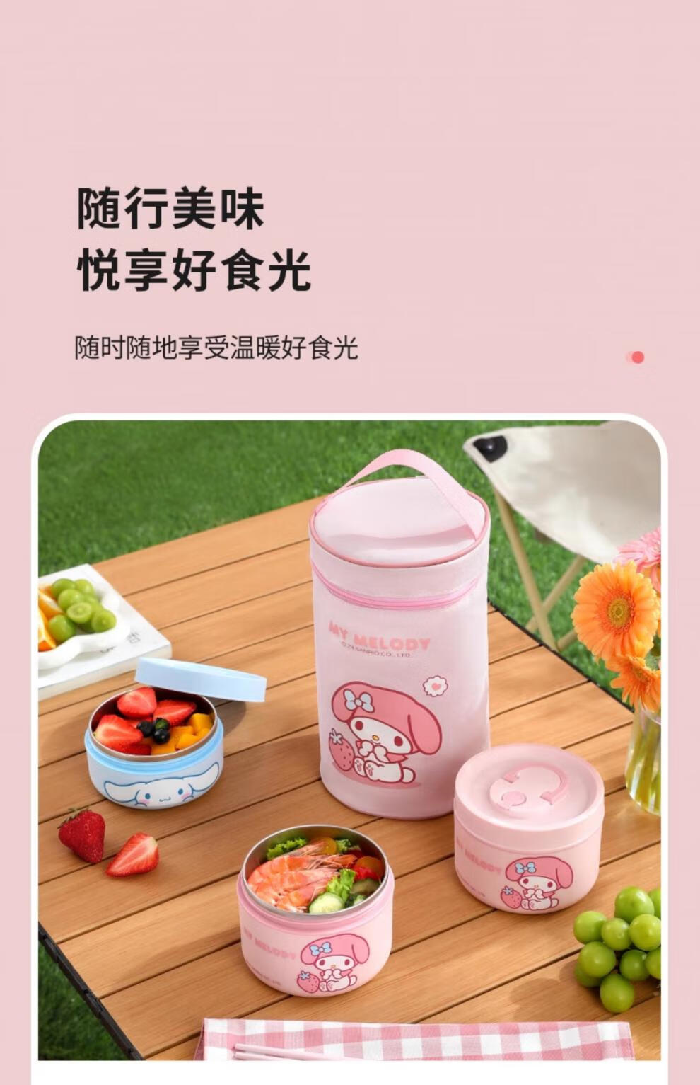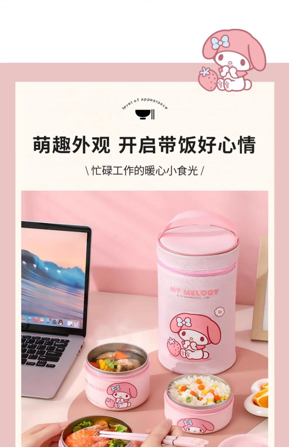 Sanrio multi-layer insulated stainless steel lunch box for office workers, microwaveable student lunch box, soup bowl, microwave style, large lunch box 600ML*2+lunch box 400ML