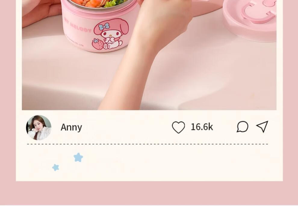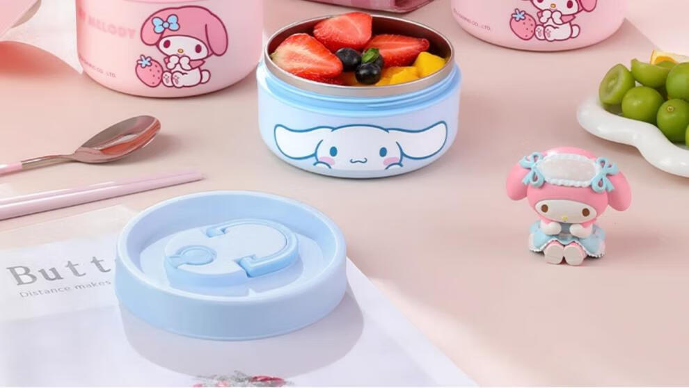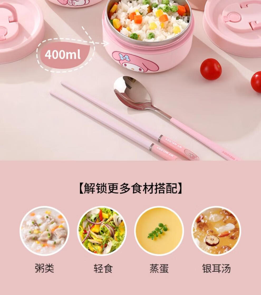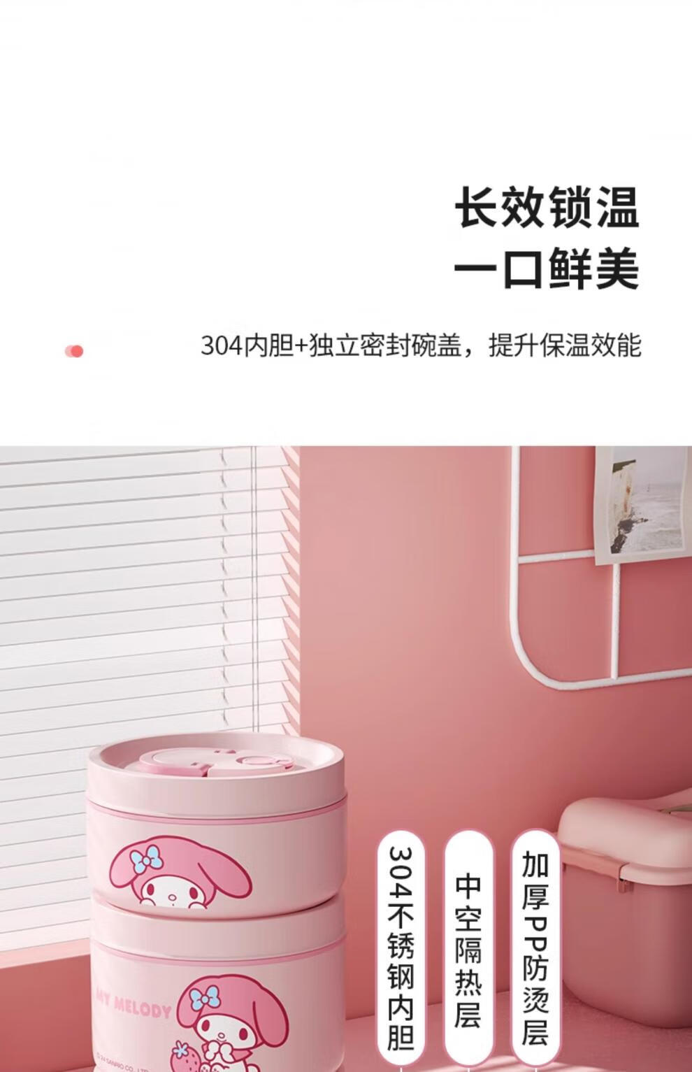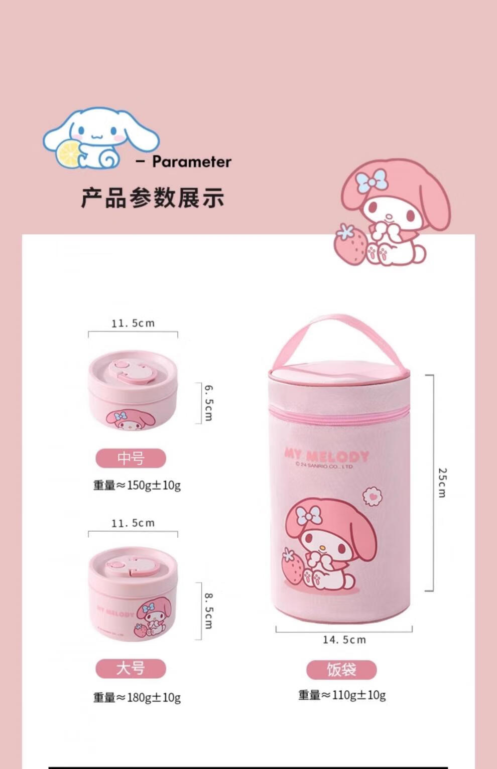 Sanrio multi-layer insulated stainless steel lunch box for office workers, microwaveable student lunch box, soup bowl, microwave style, large lunch box 600ML*2+lunch box 400ML