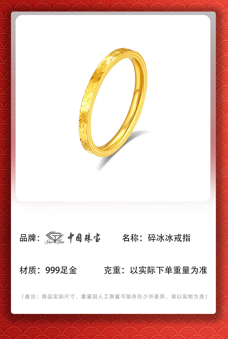 Chinese jewelry broken ice gold ring new plain ring ring solid gold ring birthday double 11 gift for girlfriend and wife broken ice gold ring about 0.6g size 15
