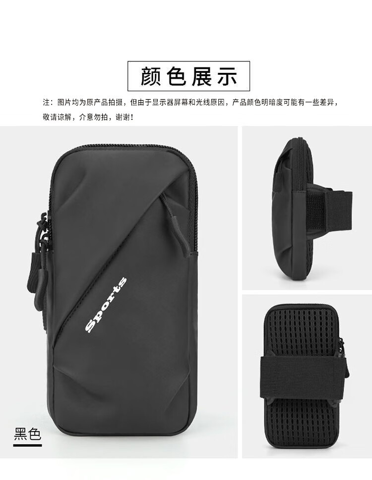 Perfect sports running mobile phone arm bag for men and women, outdoor fitness running equipment, cycling mobile phone bag, wrist cover, mobile phone carrier, arm bag 036, black/under 6.7 inches