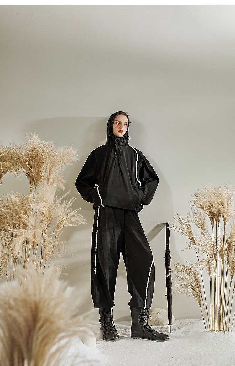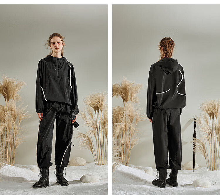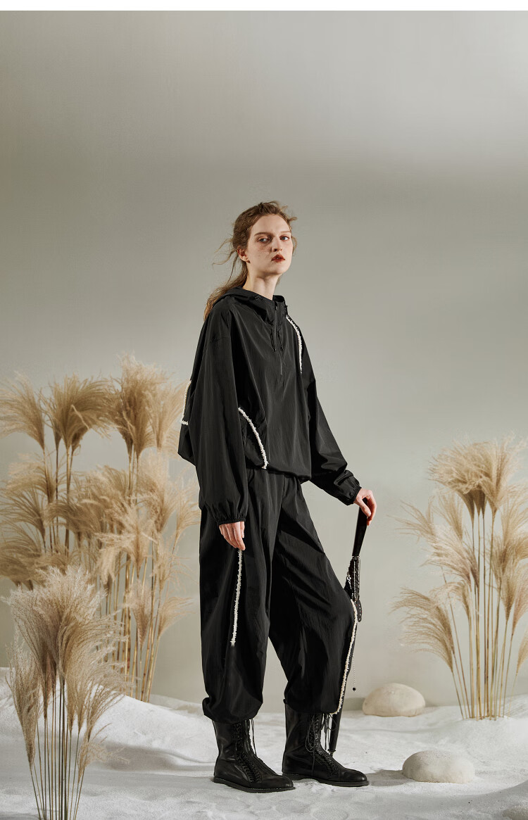 Rizui original sweatshirt pants suit 2025 spring new design loose contrasting webbing casual pants two-piece set Xunjing red L
