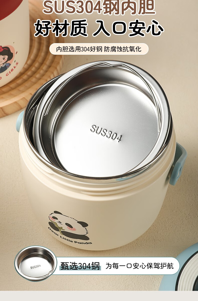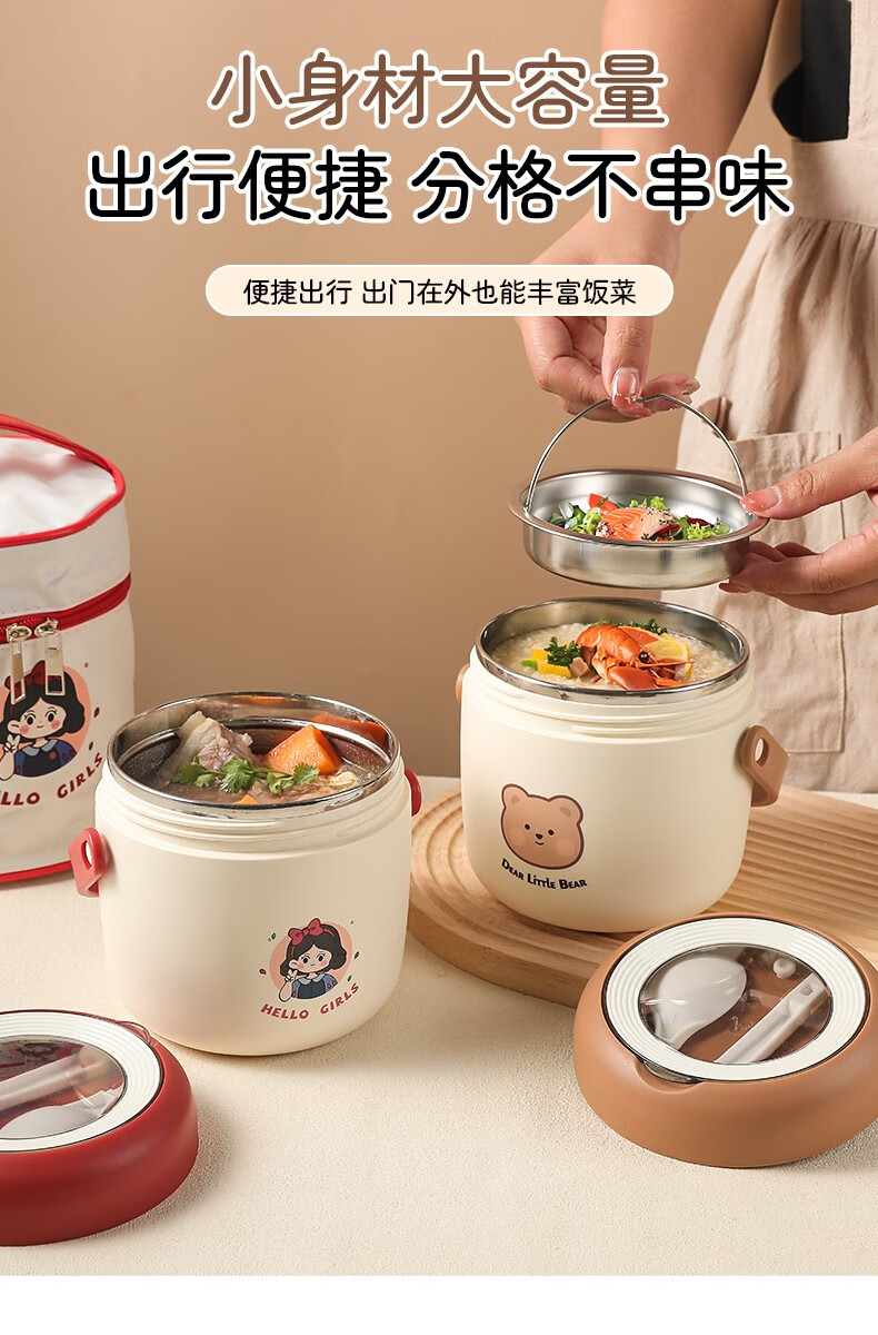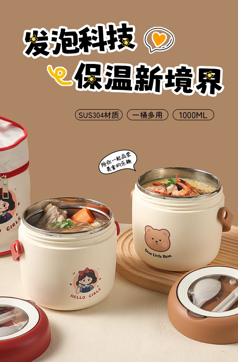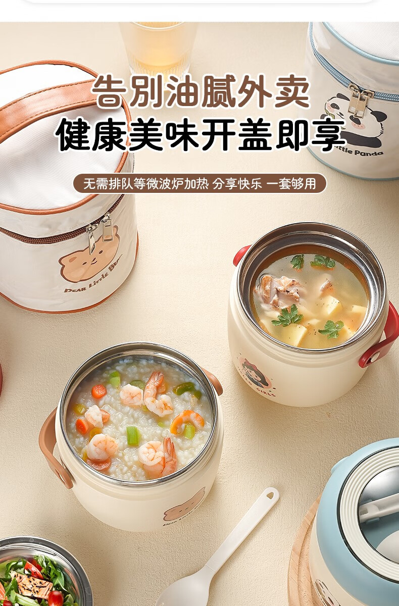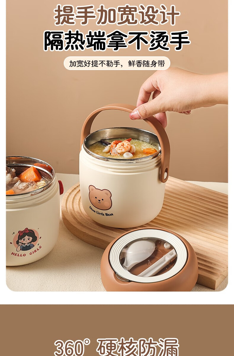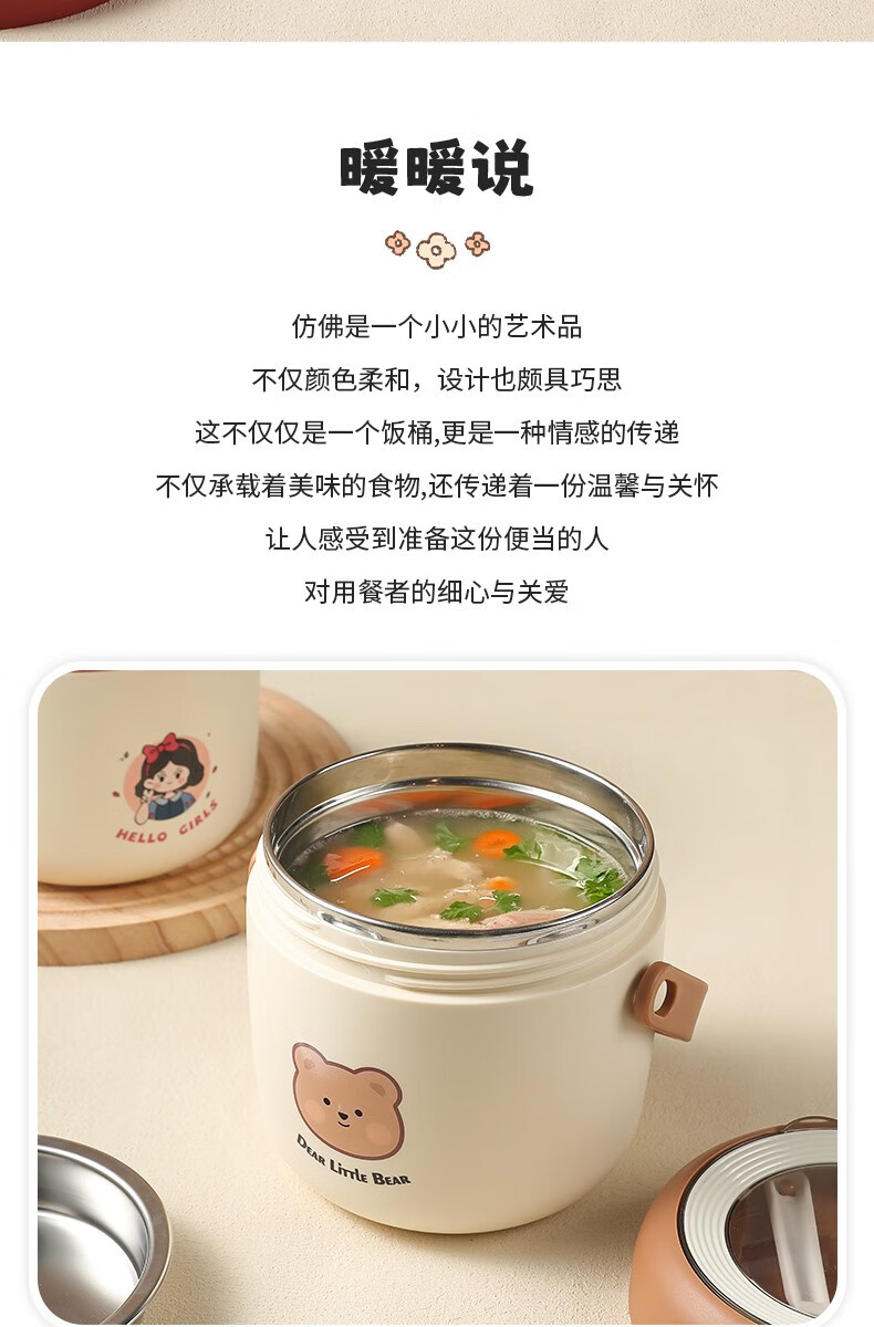 THERMOS 304 stainless steel insulated lunch box soup kettle for students and office workers with portable lunch bucket and soup box to carry leak-proof large soup kettle 304 stainless steel heart-warming bear with free folding spoon/secret