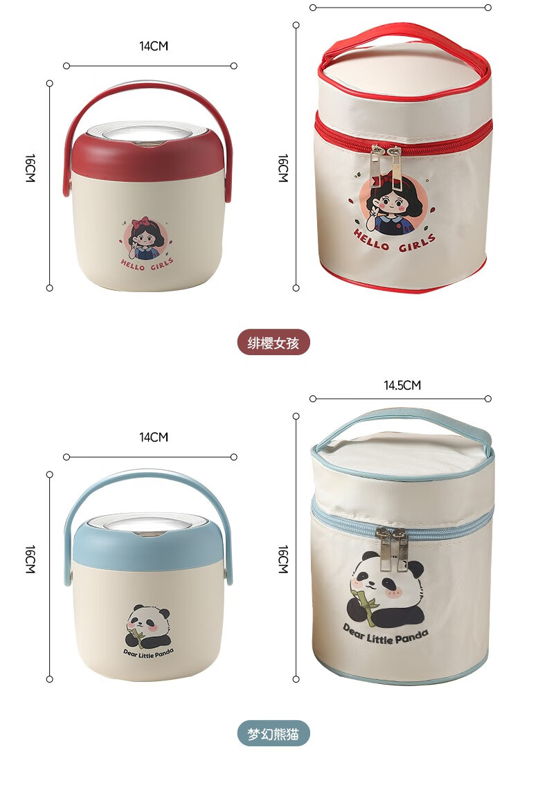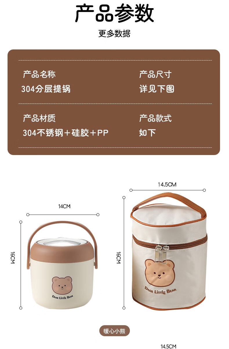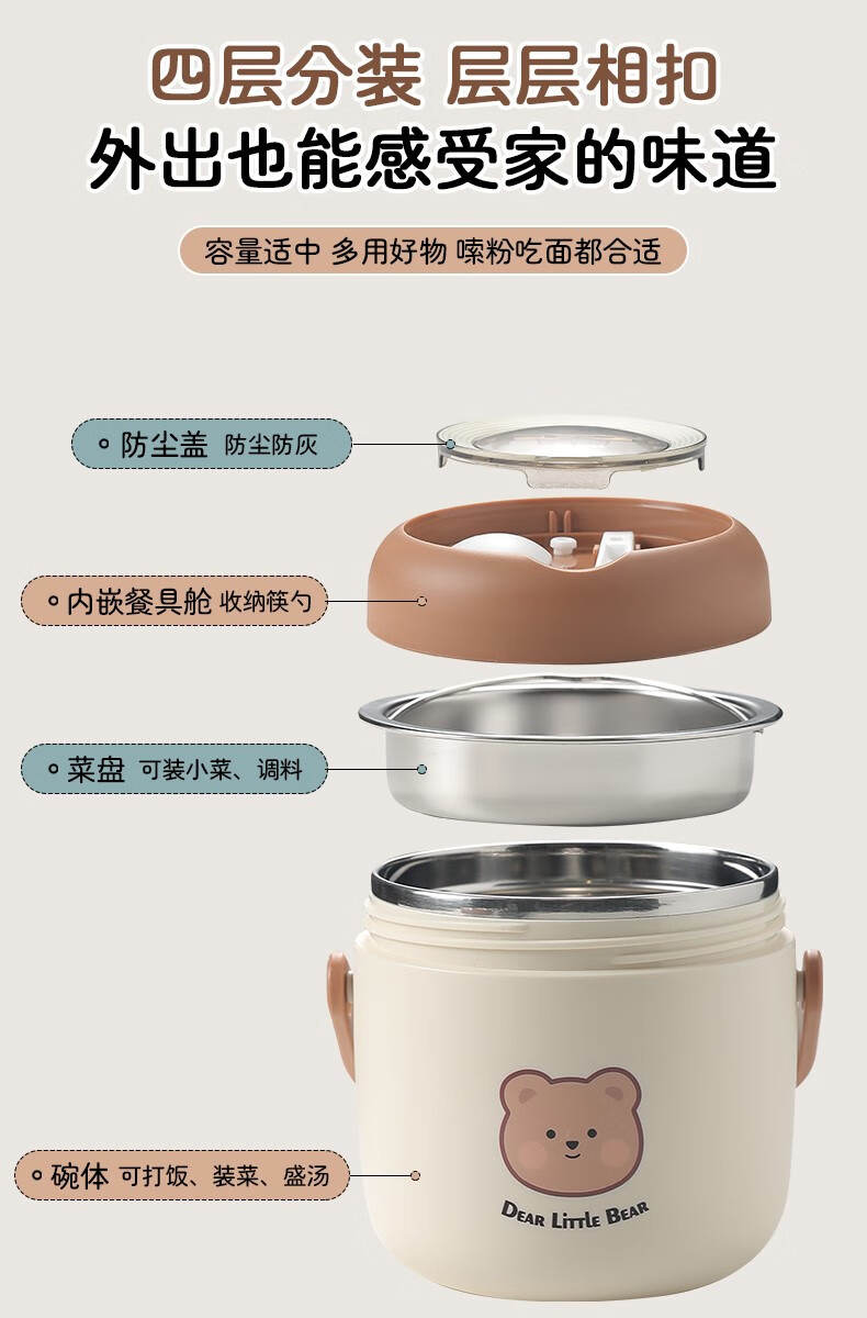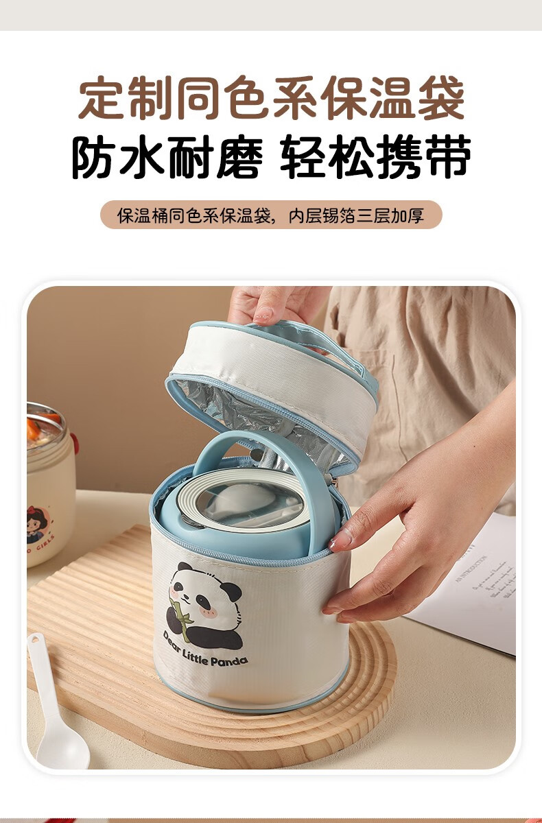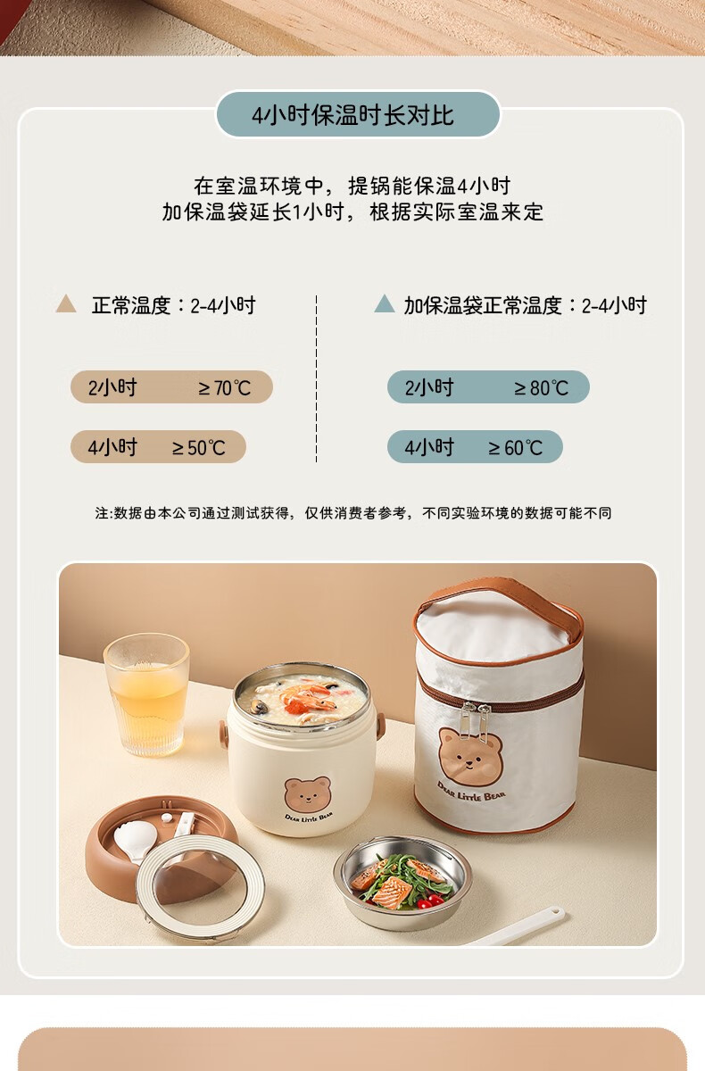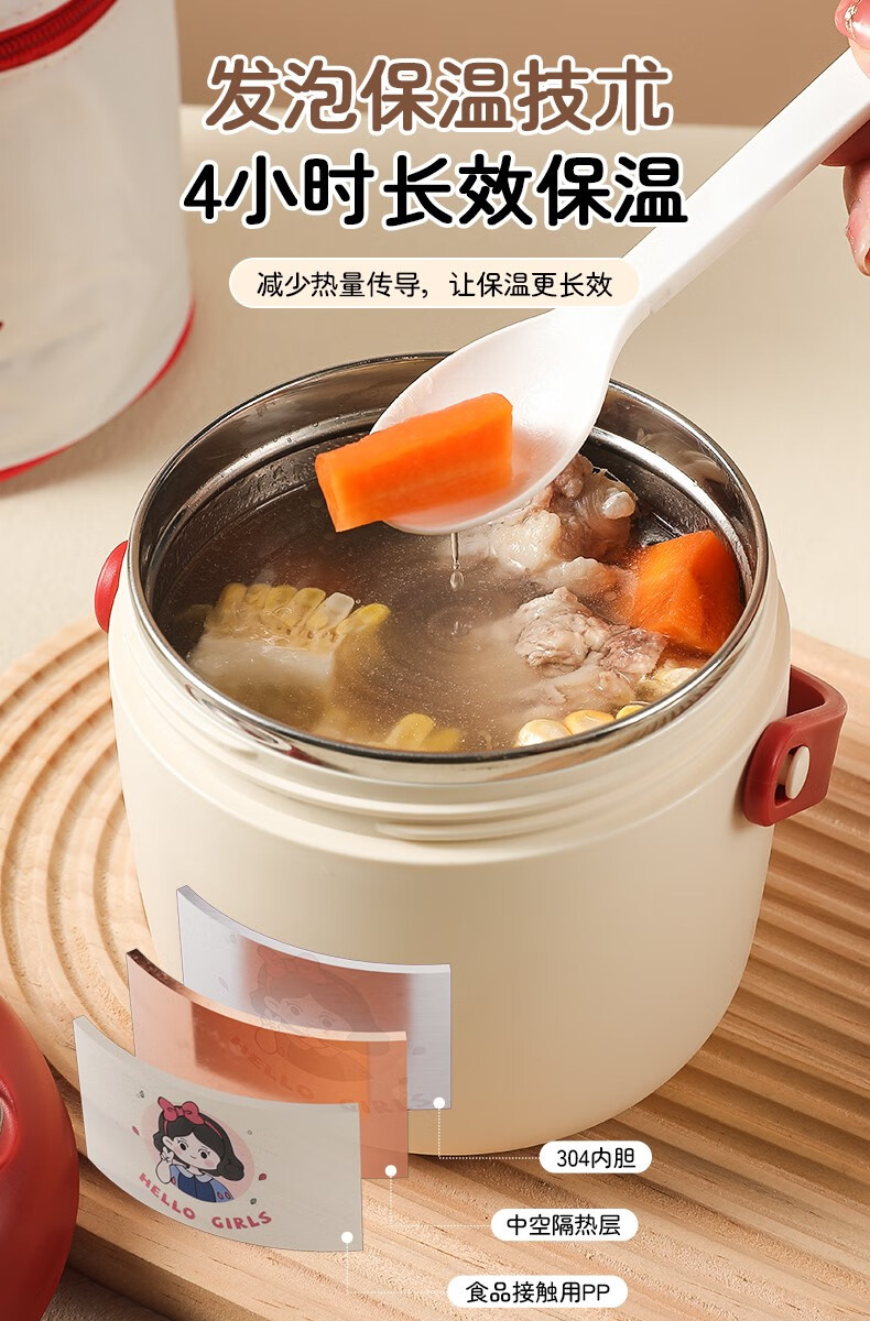 THERMOS 304 stainless steel insulated lunch box soup kettle for students and office workers with portable lunch bucket and soup box to carry leak-proof large soup kettle 304 stainless steel heart-warming bear with free folding spoon/secret