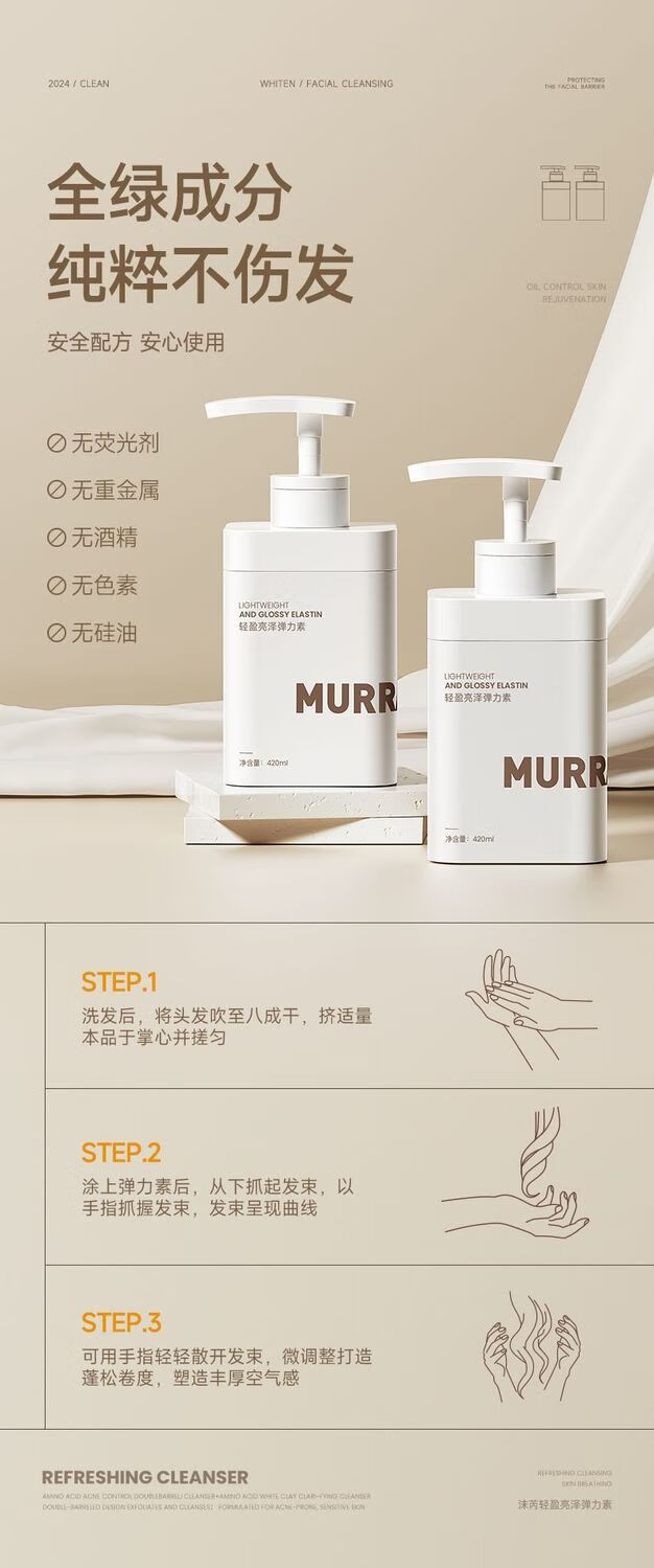 MURRAYLE elastin conditioner for women after perming, elastic curling special essence, fluffy, moisturizing, styling, long-lasting anti-frizz, 1 bottle, trial pack