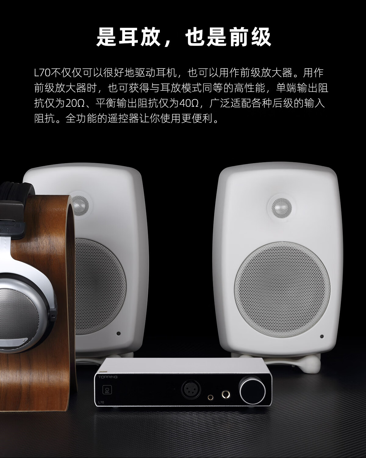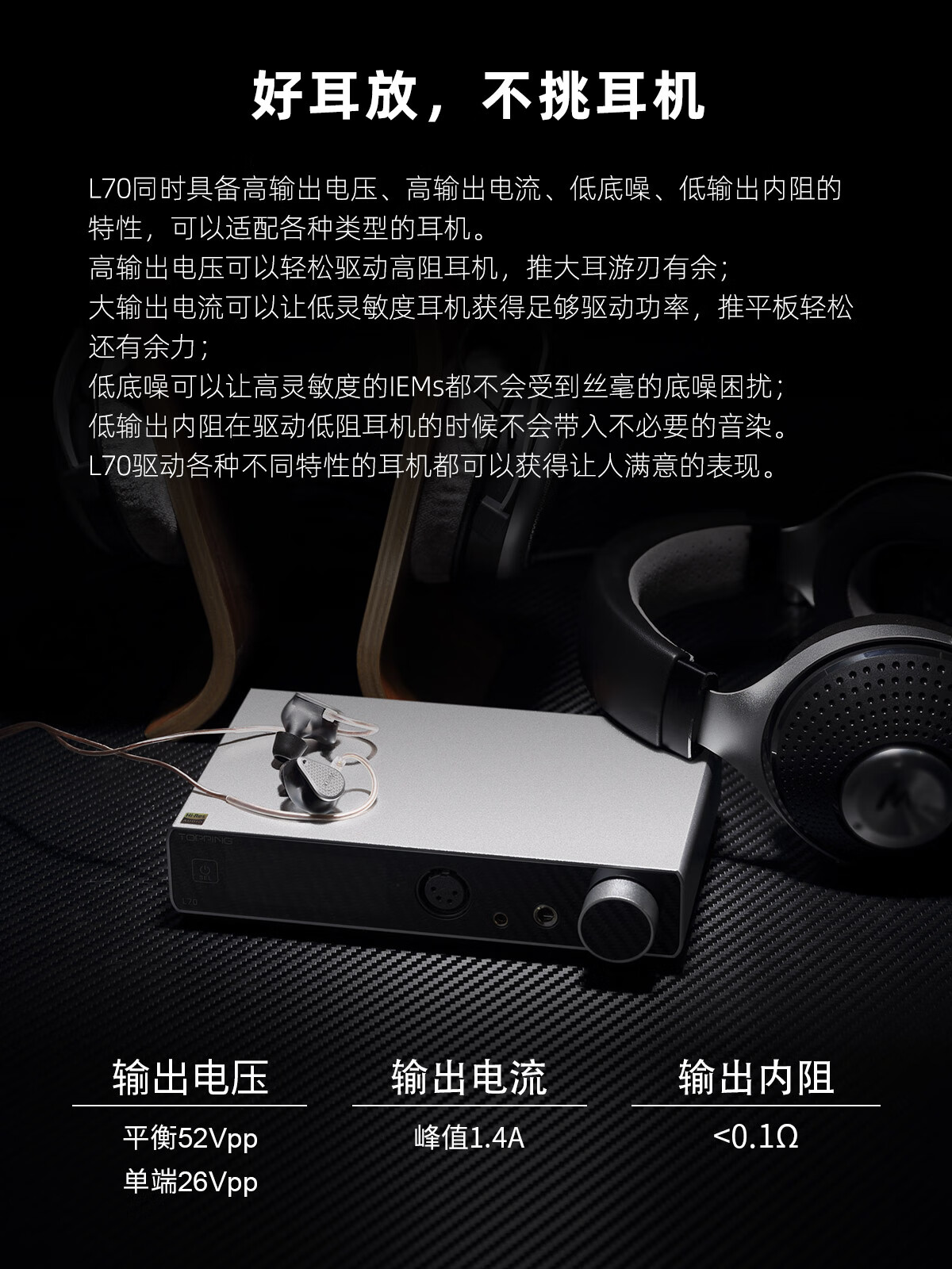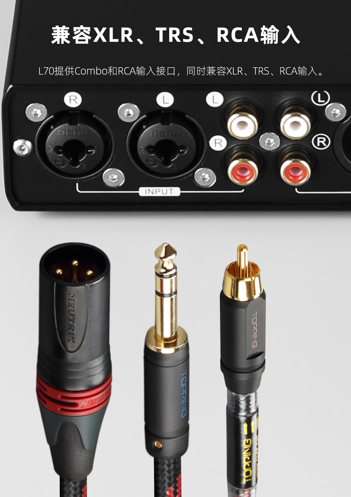 TOPPING Tuopin L70 fully balanced headphone amplifier fever desktop four-core XLR interface 4.4 amp decoder small tail big thrust mobile phone computer decoding amp black L70
