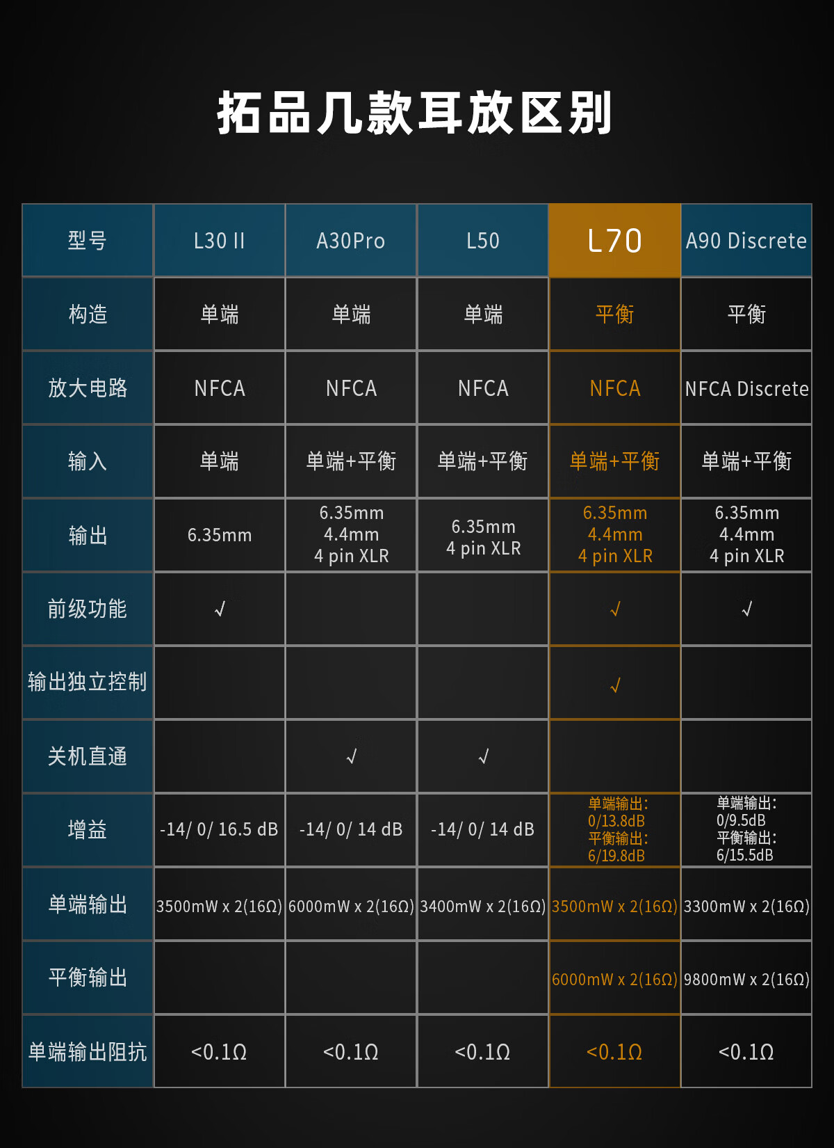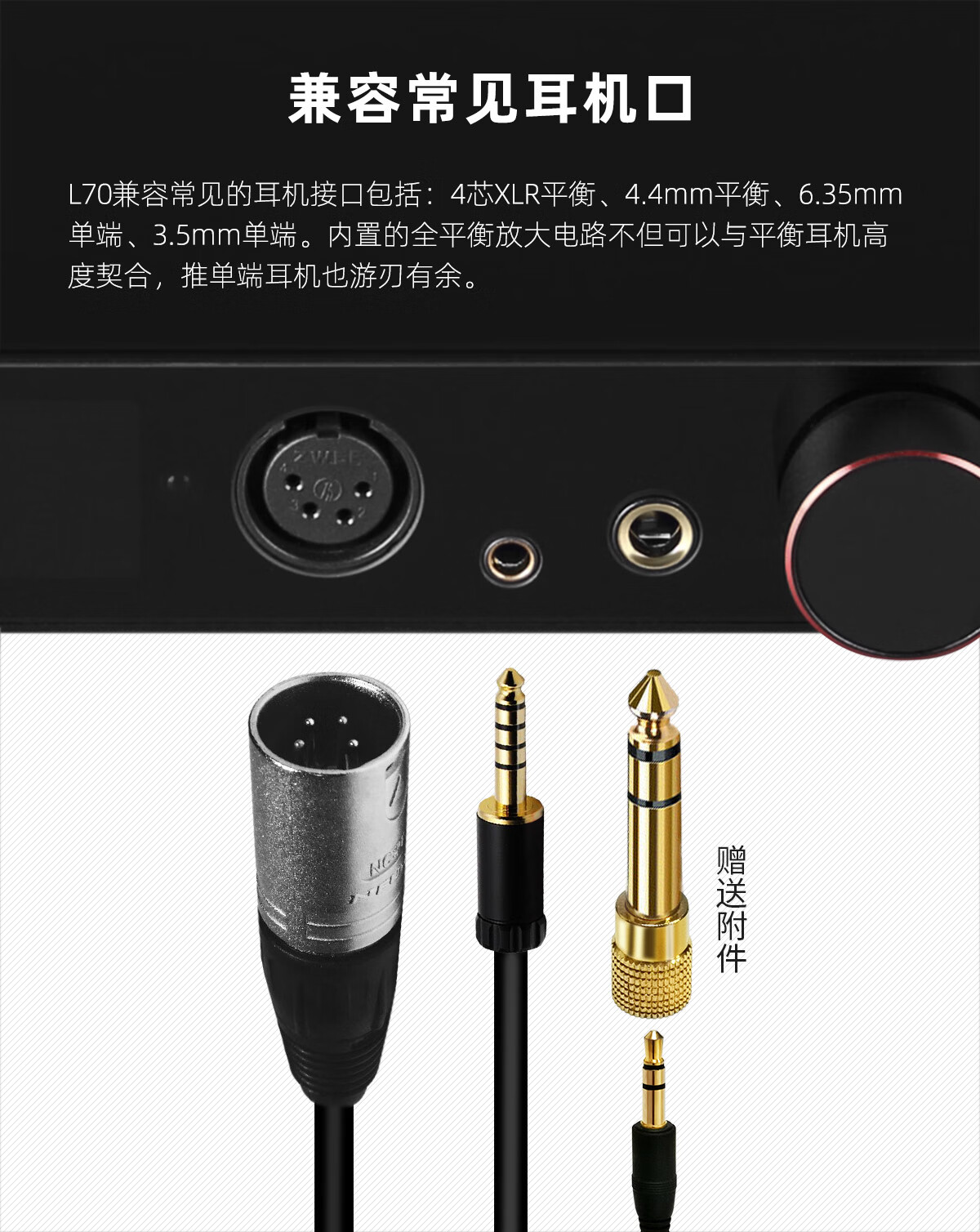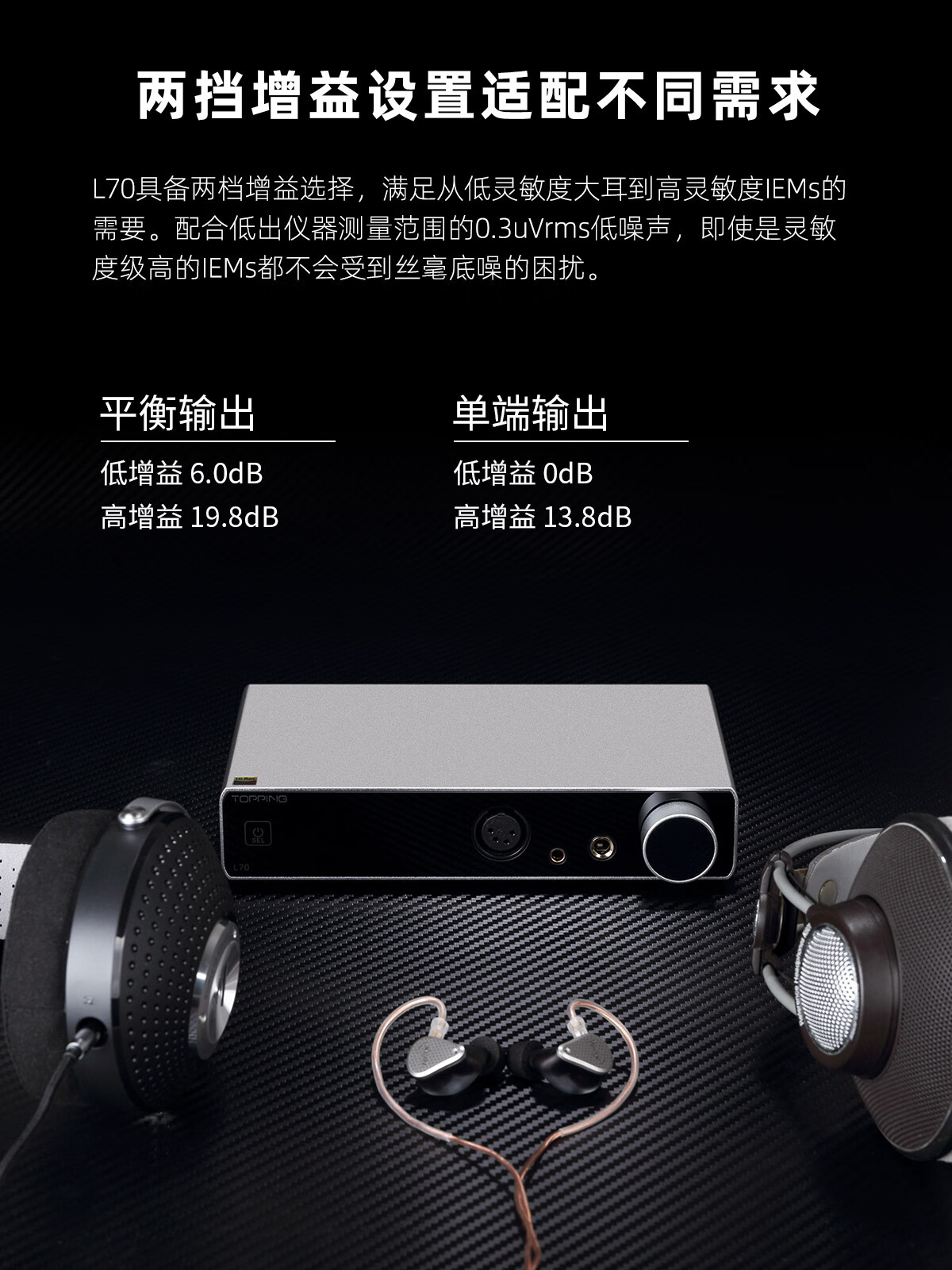 TOPPING Tuopin L70 fully balanced headphone amplifier fever desktop four-core XLR interface 4.4 amp decoder small tail big thrust mobile phone computer decoding amp black L70