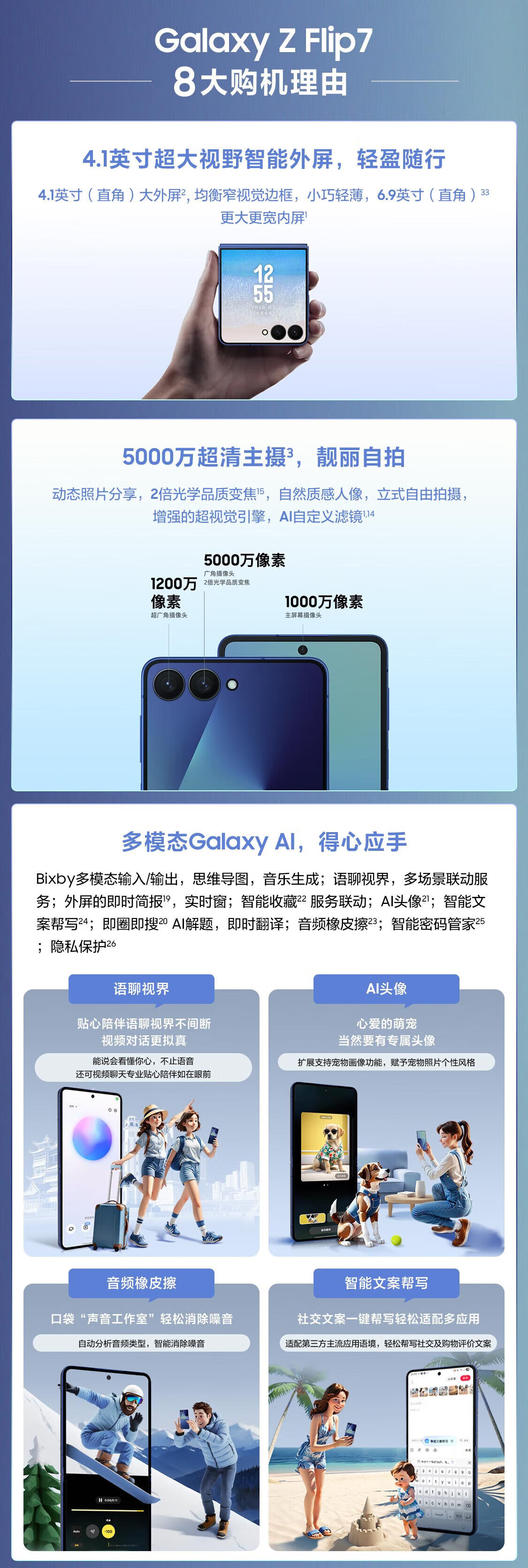Samsung Galaxy Z Flip7 Folding Screen Mobile Phone 4.1-inch Extra Large Smart External Screen Coral Red 12GB+256GB Genuine Activation Comes with Free Shipping Insurance