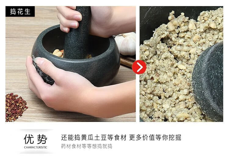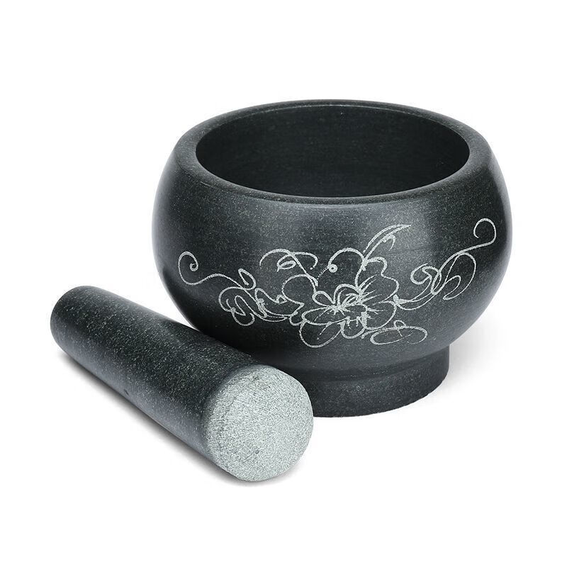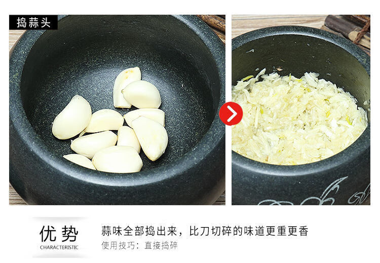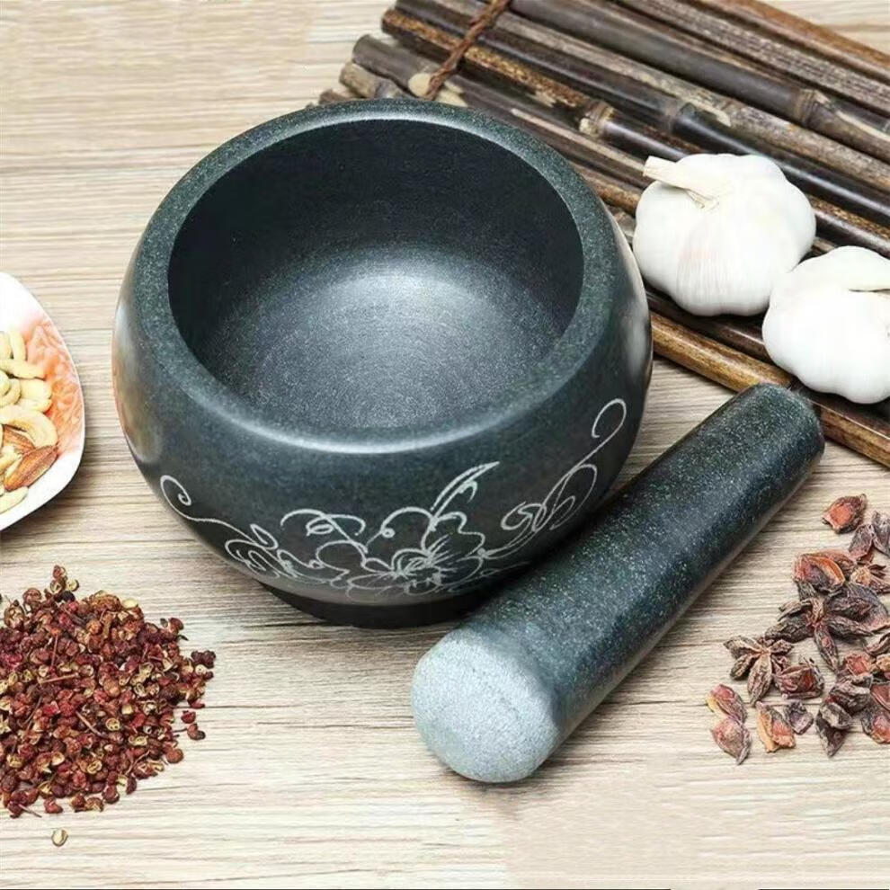 Jiaqi household natural bluestone stone mortar, garlic mortar, garlic pounder, medicine jar, stone cup, pounder, baby food supplement, outer diameter 12CM with hammer