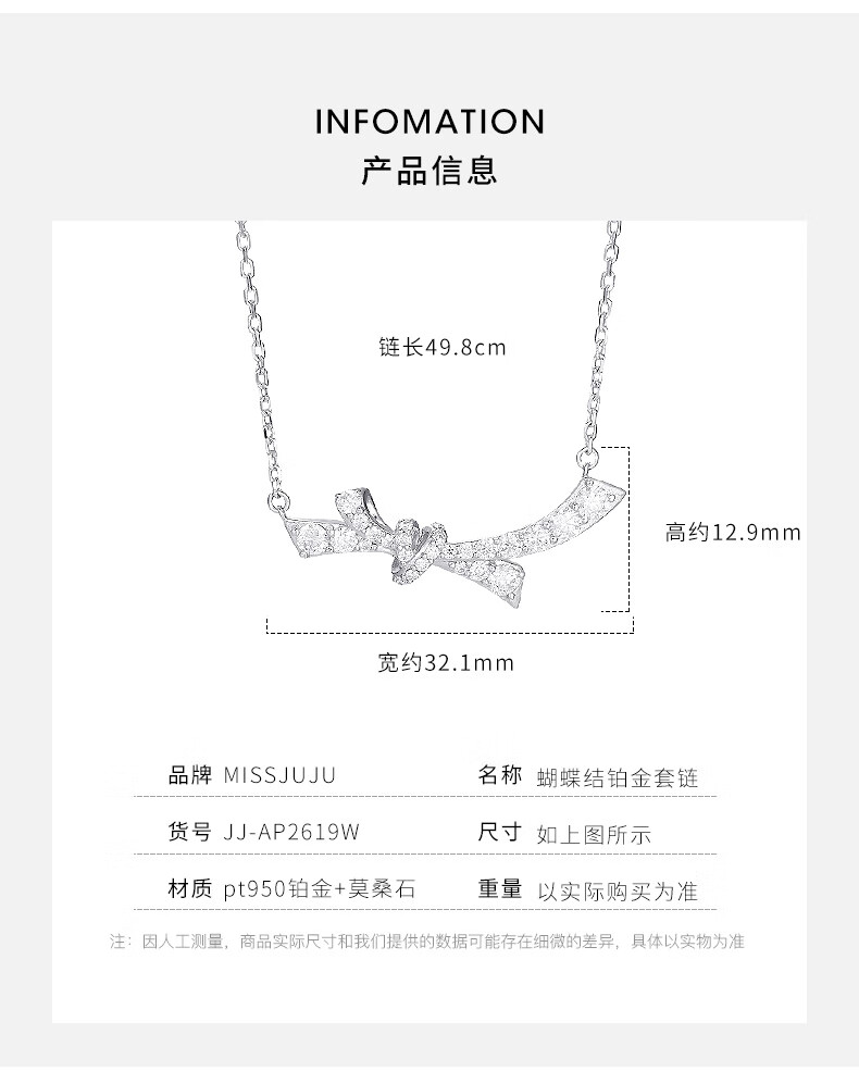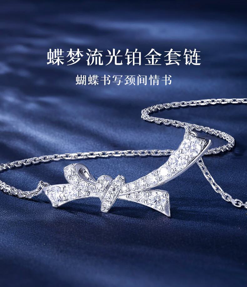 Miss JuJu Platinum Butterfly Dream Streamer Necklace for Women pt950 White Gold Inlaid with Moissanite Diamonds Light Luxury Gift for Wife Butterfly Dream Streamer Platinum Necklace (Inlaid with Moissanite Diamonds) + Certificate + Rose Gift Box