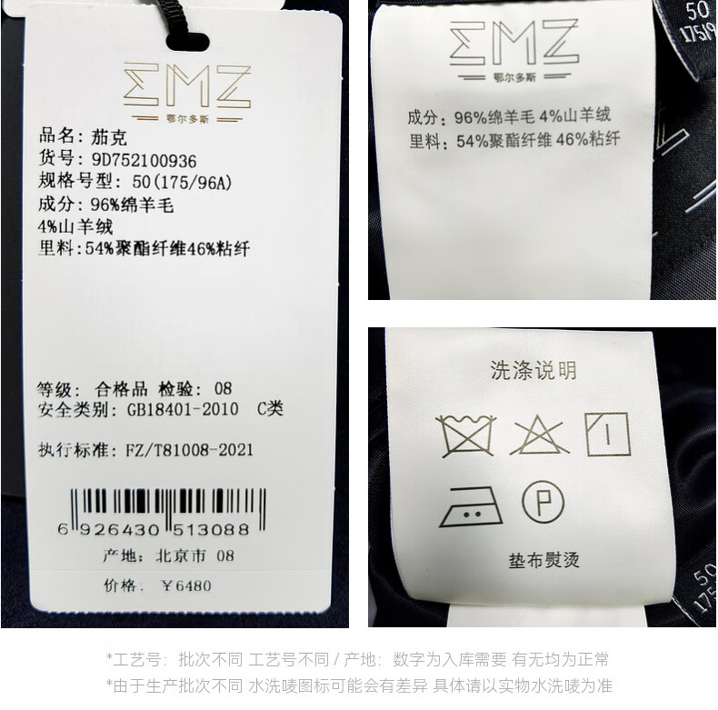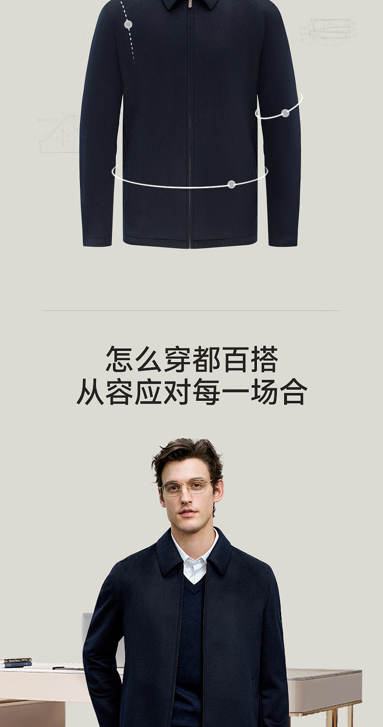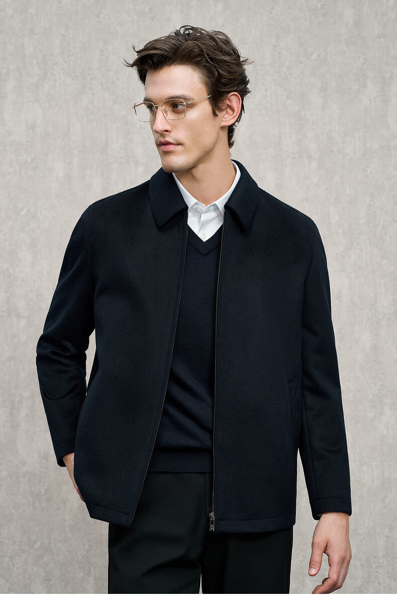 EMZ Ordos wool cashmere 25 autumn and winter new high-end business formal wear lapel men's jacket coat top Navy L 175/96A