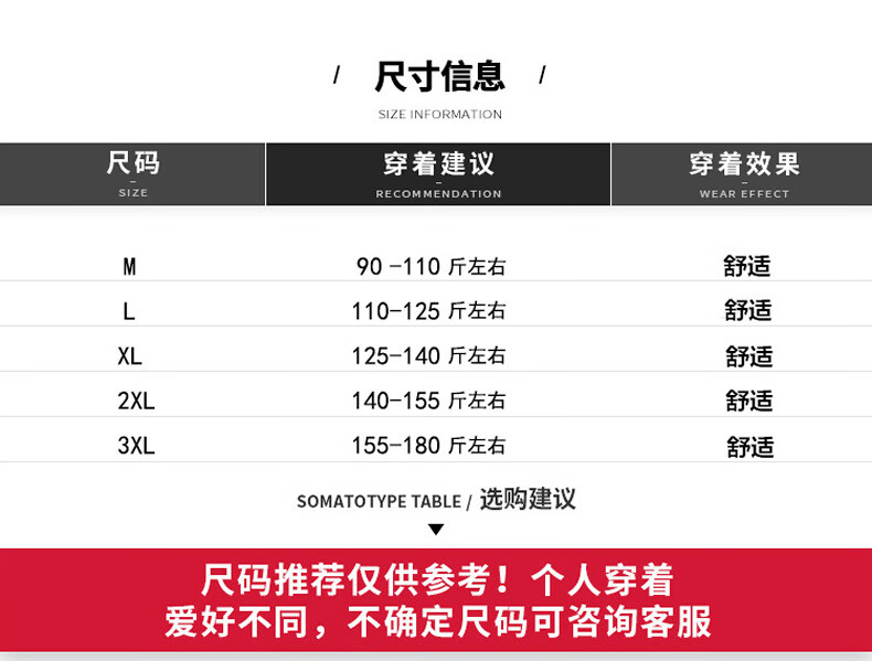 China (cm) 165 / 88-90 170 / 96-98 175 / 108-110 180 / 118-122 185 / 126-130