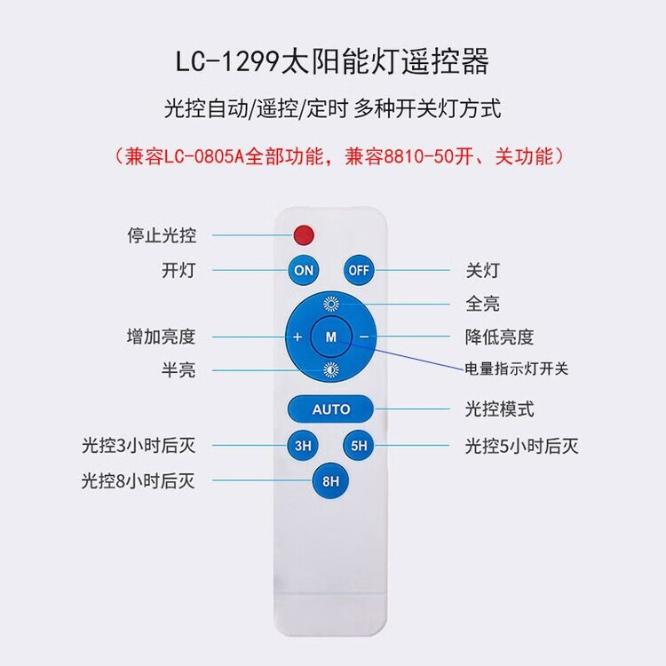 Solar light remote control, universal, household and outdoor accessories, suitable for street lights and floodlights. Solar light remote control + matching battery pair. Multi-function LC-1299