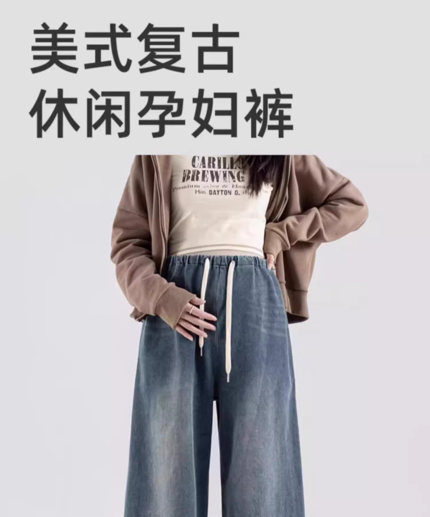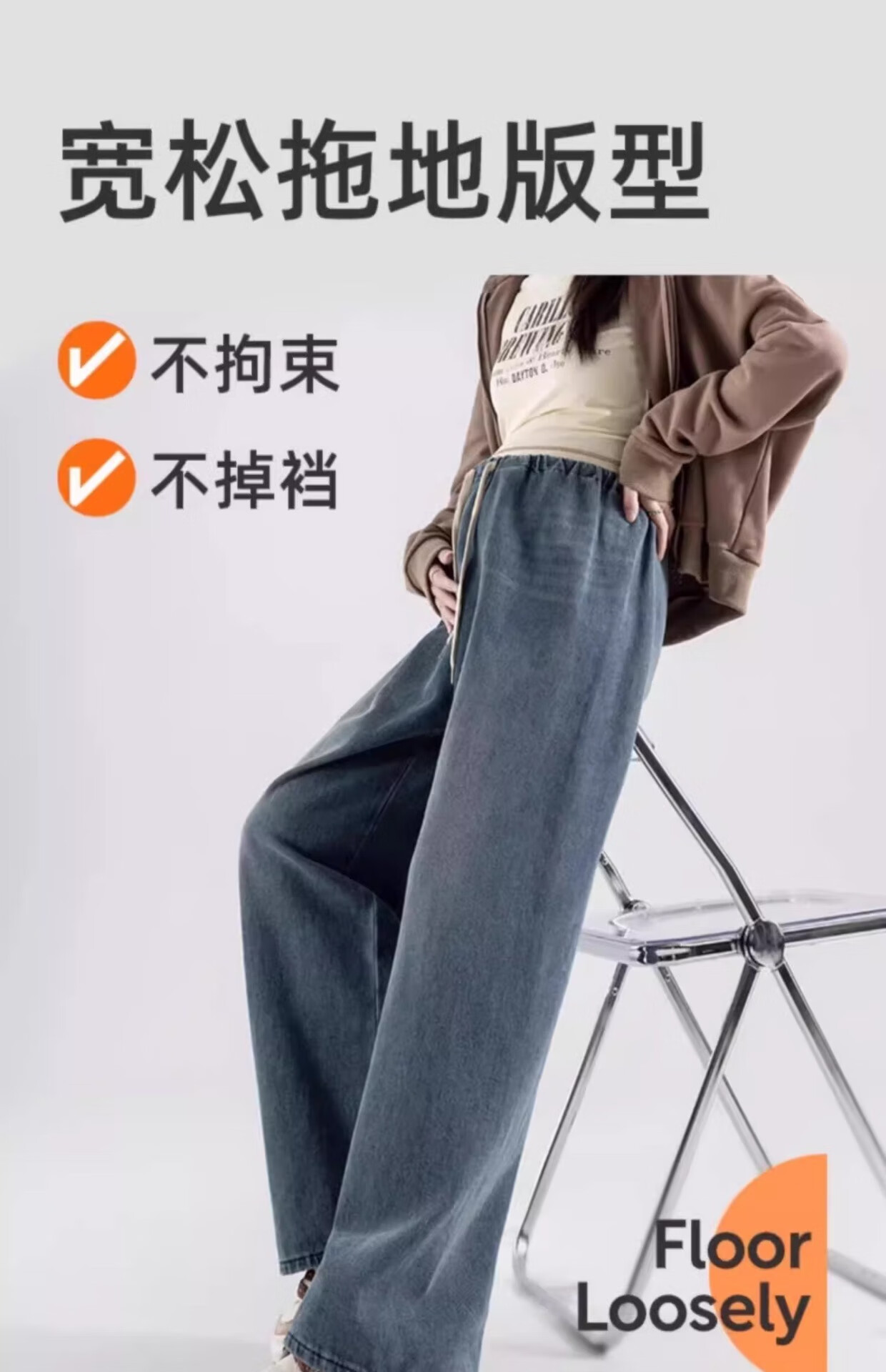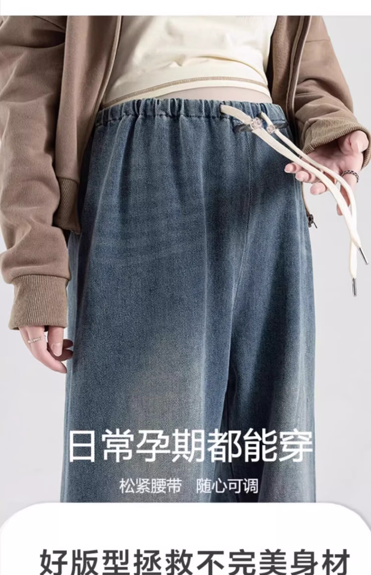 Ariana's belly-less maternity jeans for spring and autumn, new autumn and winter casual straight wide-leg pants, retro blue large size, suitable for 110-135 Jin, Jin is equal to 0.5 kg, can be worn during pregnancy and postpartum
