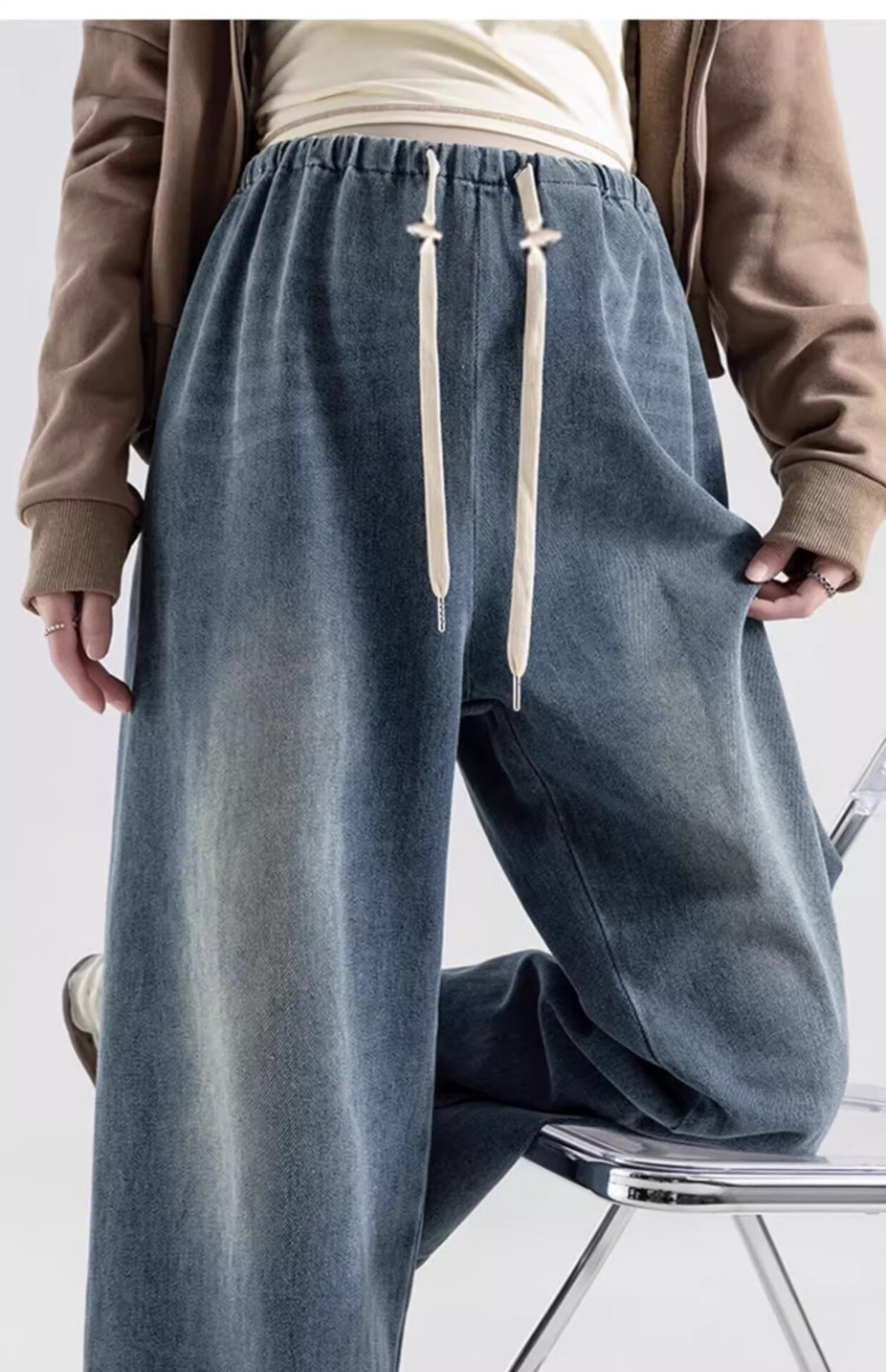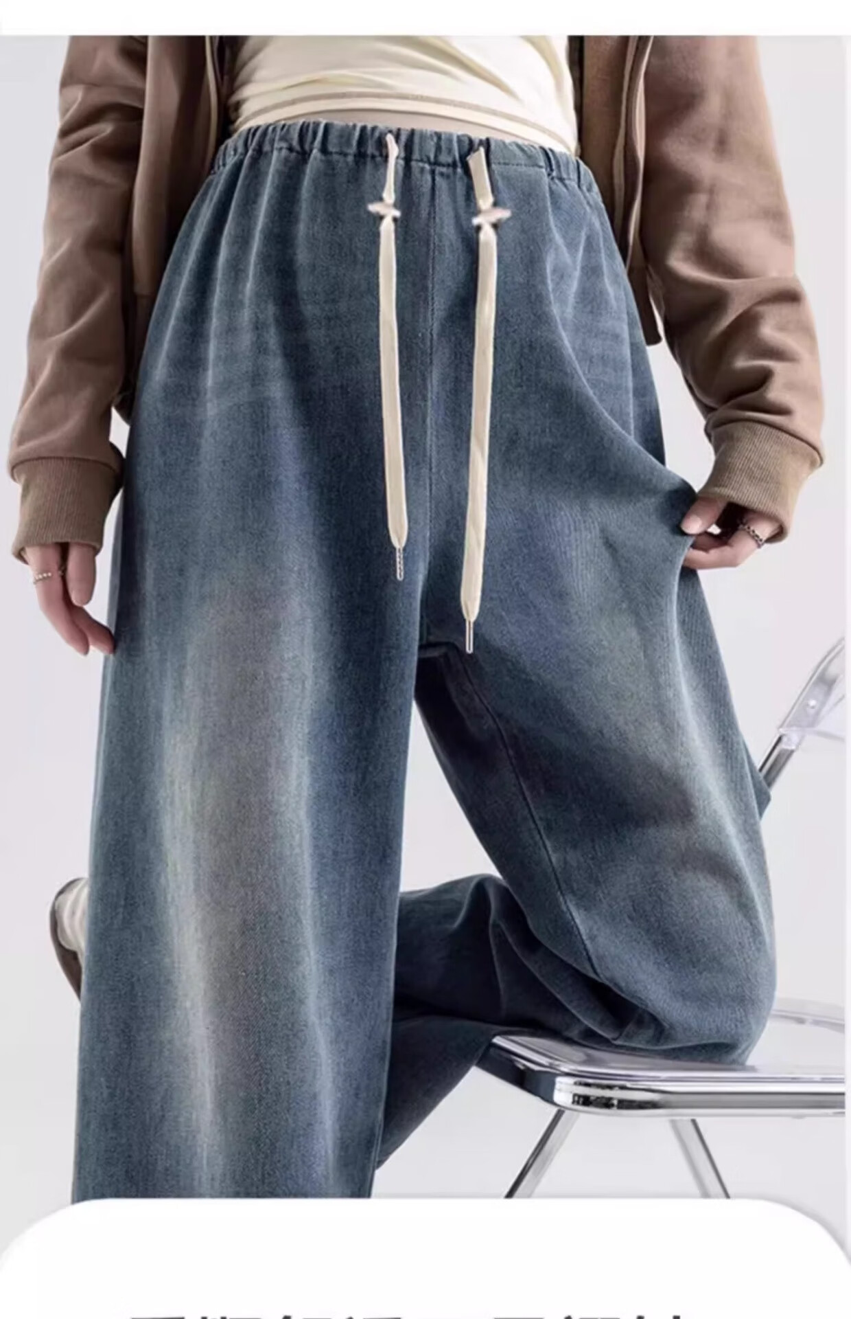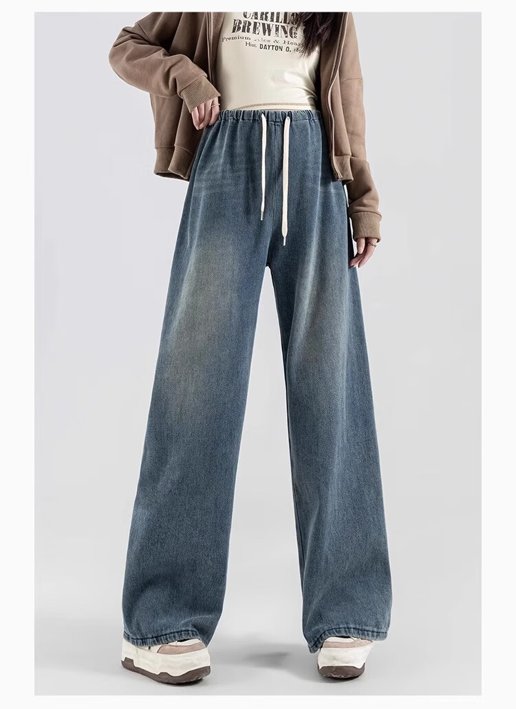 Ariana's belly-less maternity jeans for spring and autumn, new autumn and winter casual straight wide-leg pants, retro blue large size, suitable for 110-135 Jin, Jin is equal to 0.5 kg, can be worn during pregnancy and postpartum