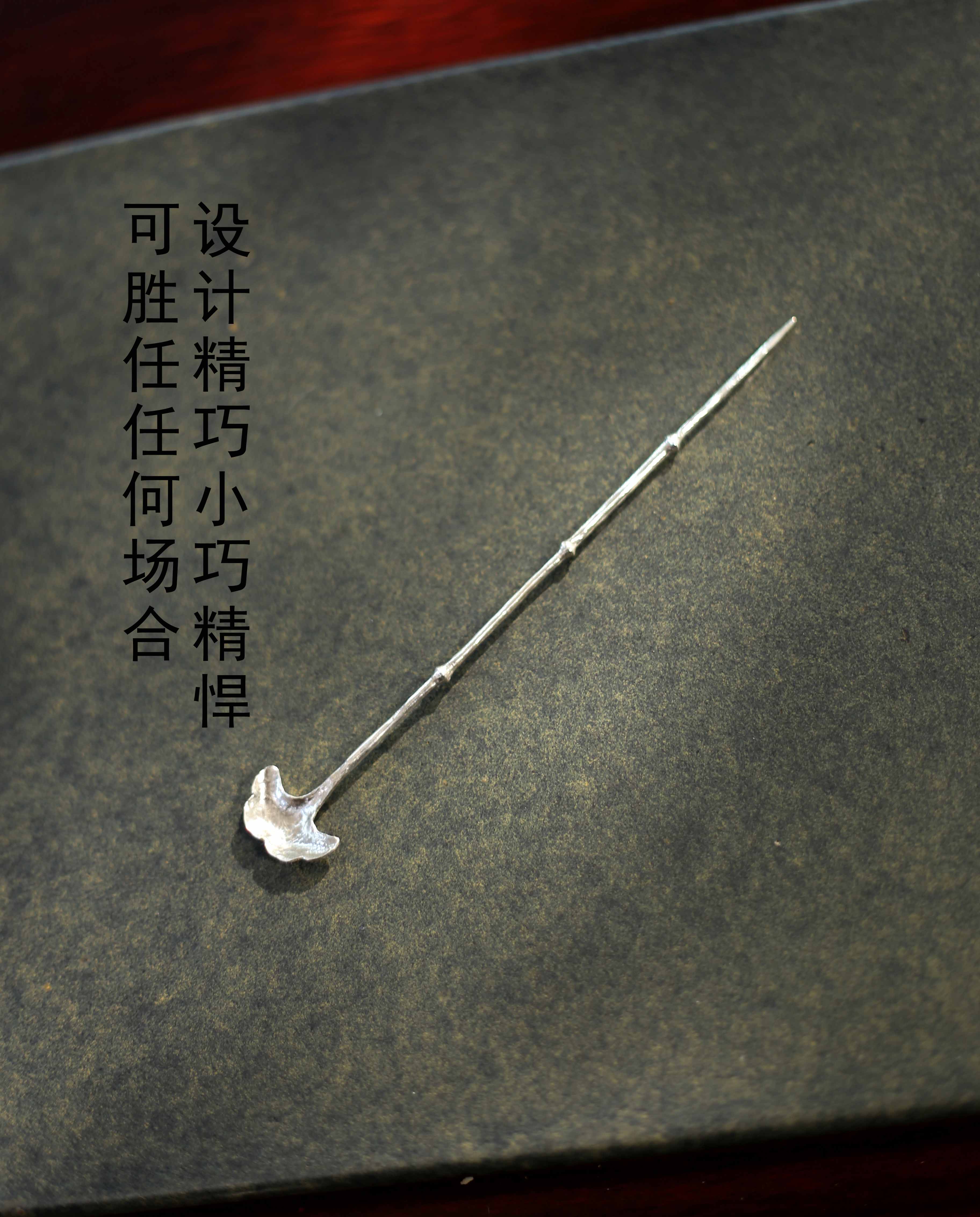 Wen Yijia Chinese-style handmade sterling silver ginkgo leaf-shaped tea spoon bamboo tea needle integrated tea dial tea spoon tea spoon tea ceremony accessories sterling silver ginkgo leaf tea spoon tea needle