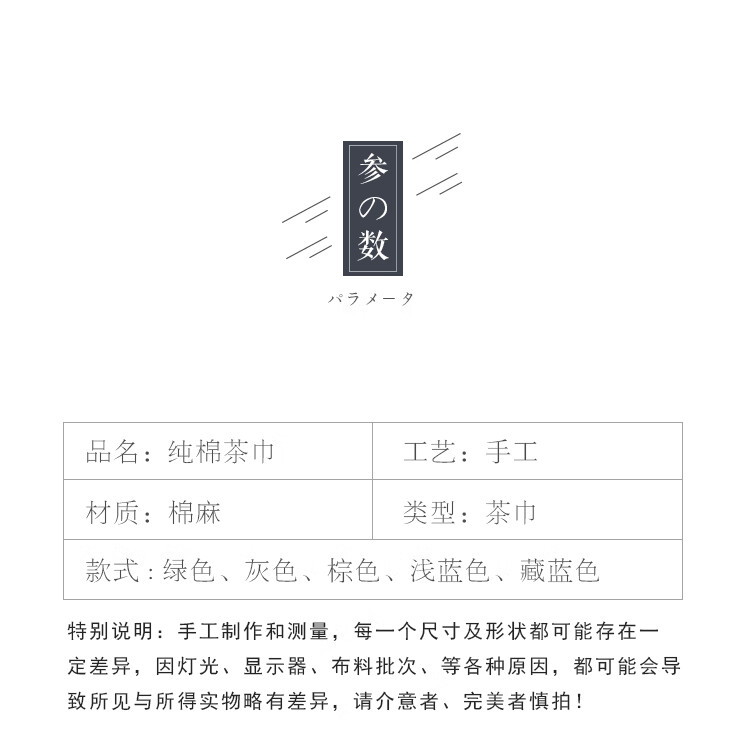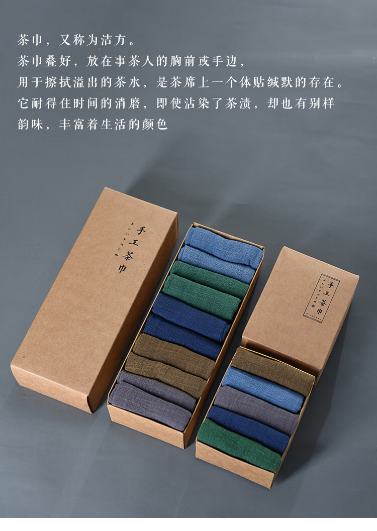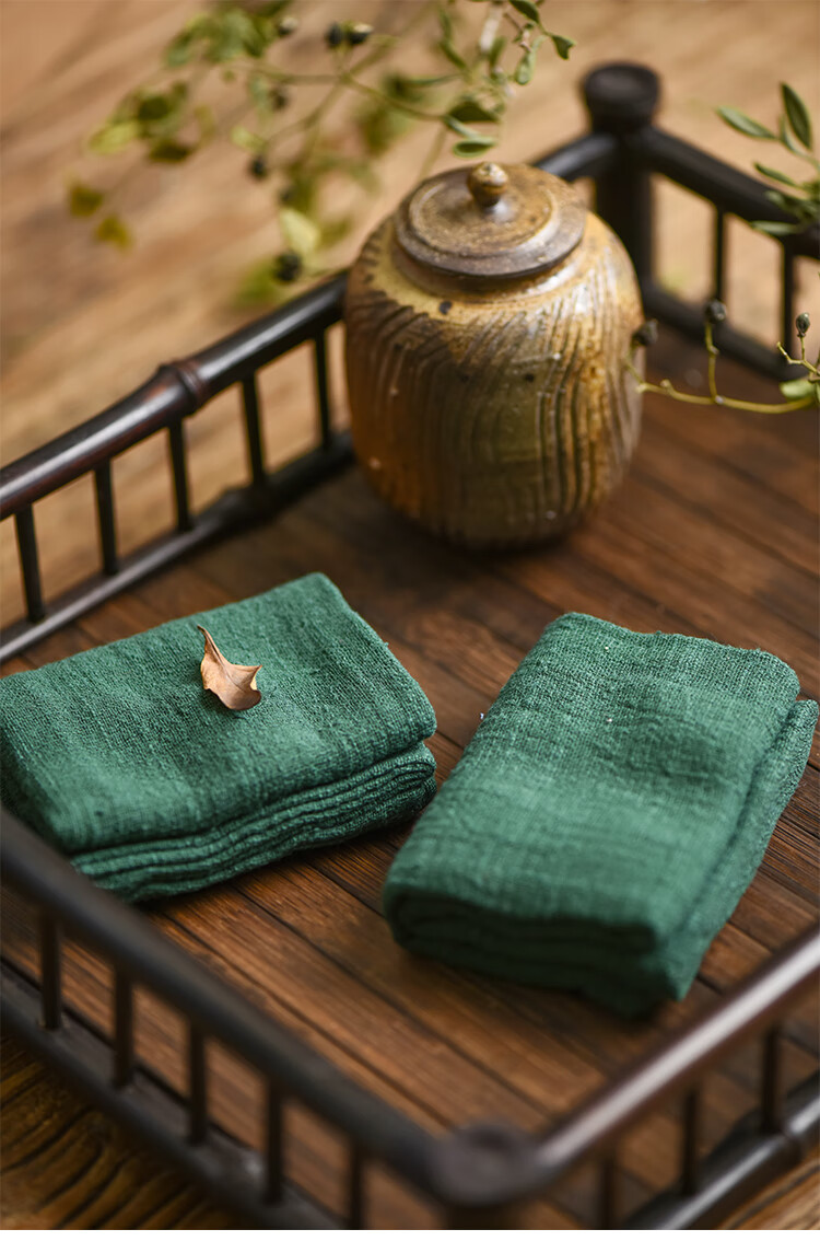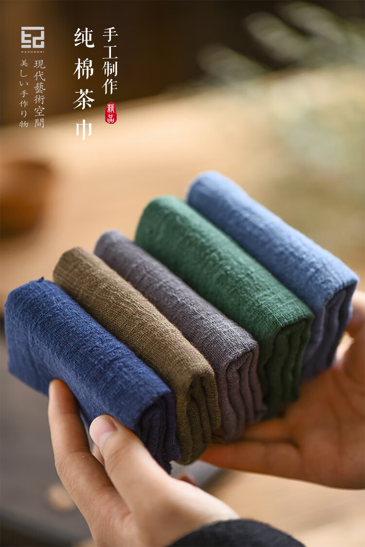 Wen Shiou Chinese-style cotton and linen tea towel tea ceremony purple clay pot raising pot towel tea table towel Zen tea cloth tea mat absorbent rag set of five colors (5 pieces)