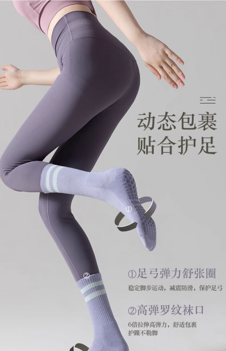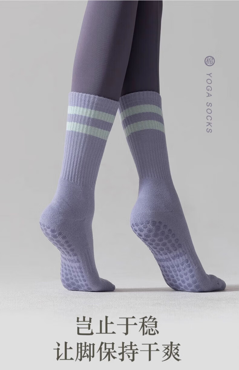 Skingcond yoga socks non-slip women's Pilates thickened sports fitness running skipping rope high school pressure non-slip socks 2 pairs of purple + purple one size
