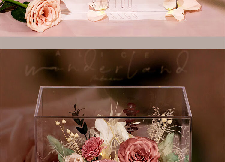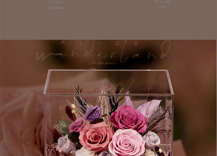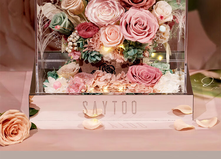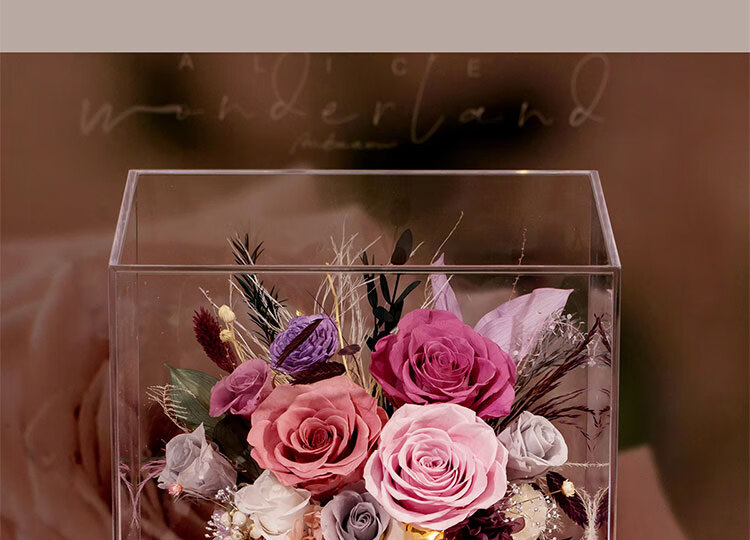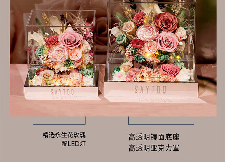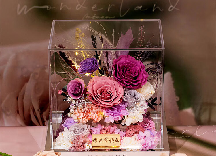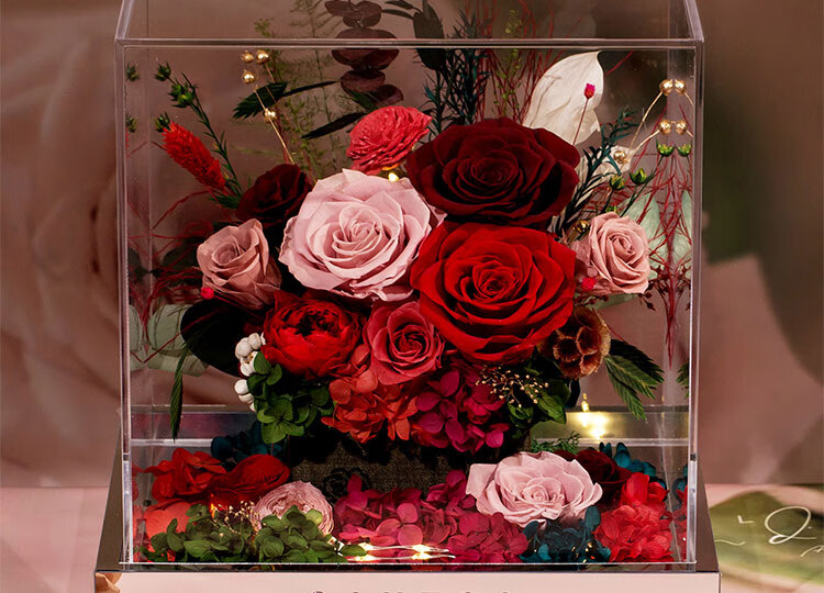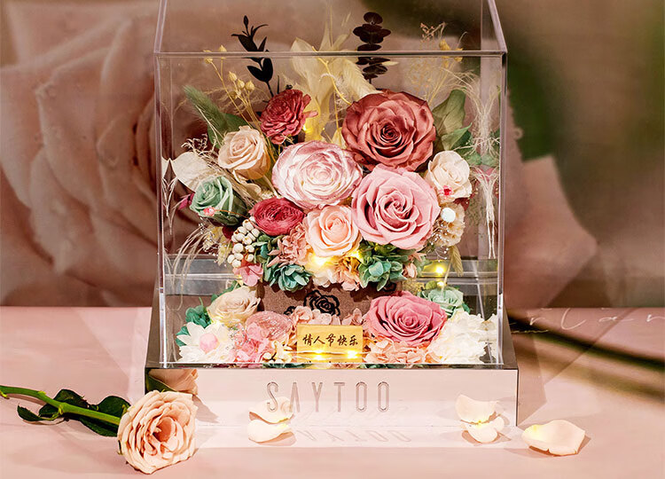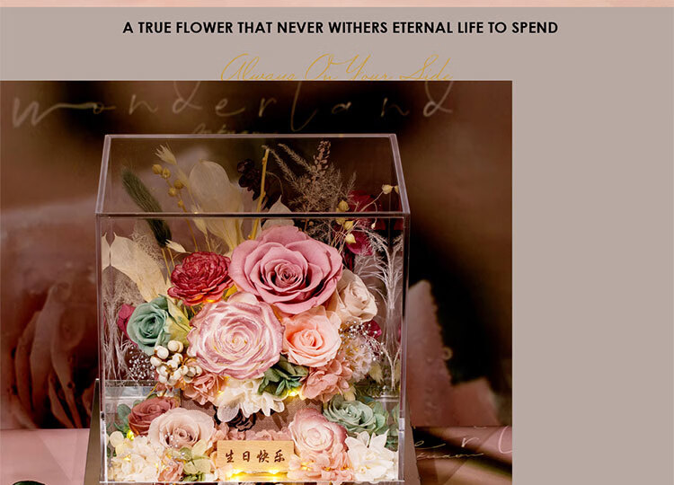 Fat Donglai's same Chinese Valentine's Day gift, a story-telling bouquet of everlasting flowers and roses for his girlfriend and wife's birthday. Chang'an Changle ~ Carnation ~ Champagne pink surrounded by atmosphere lights