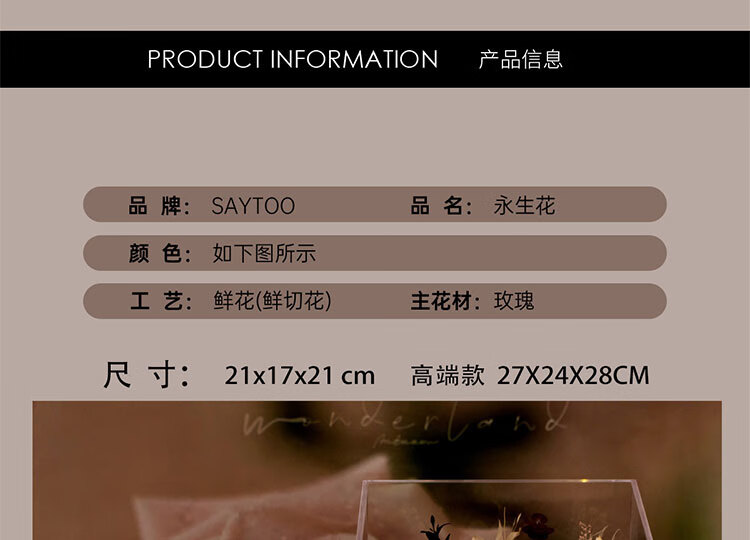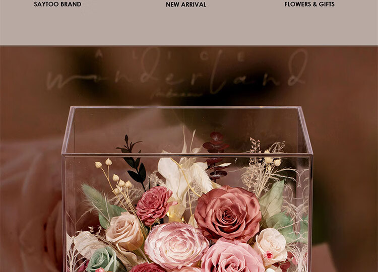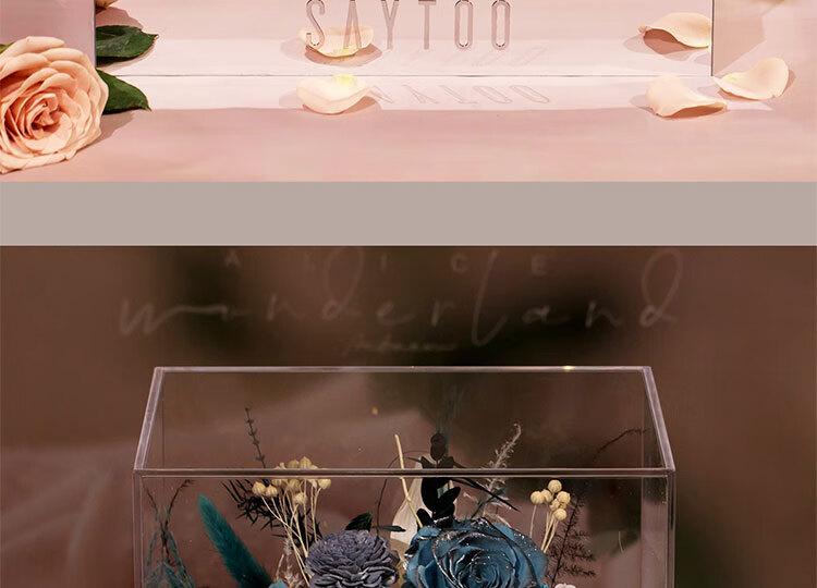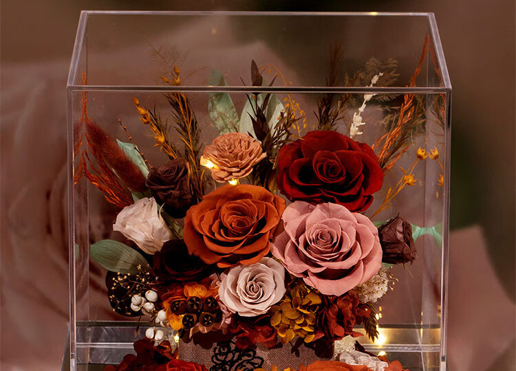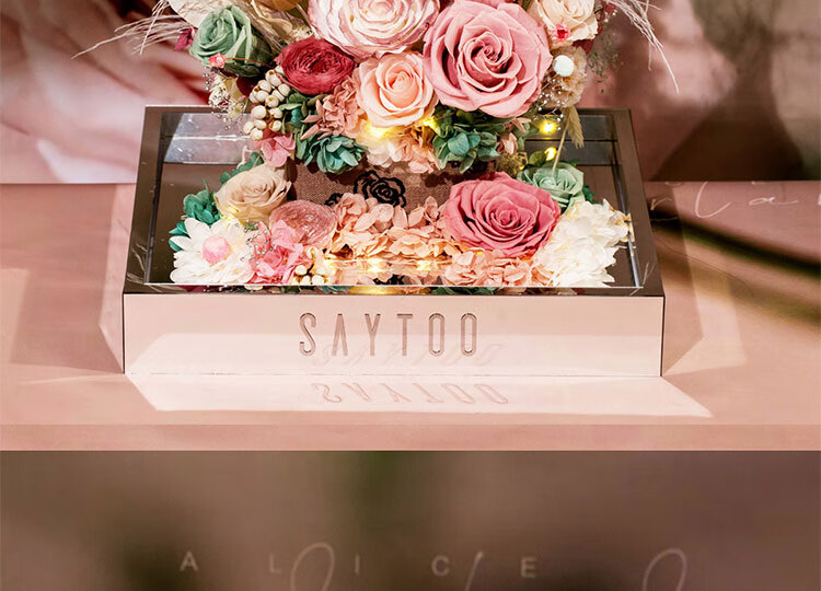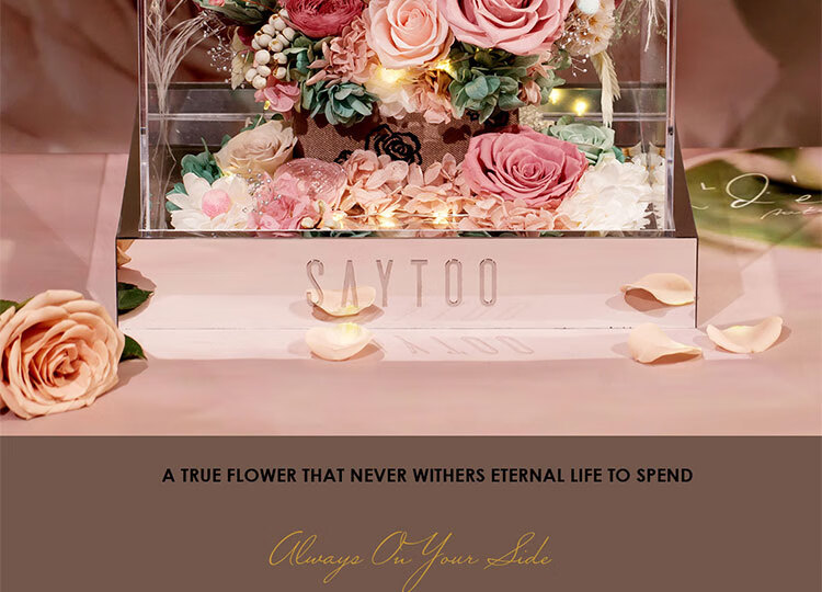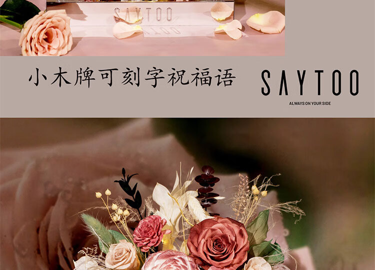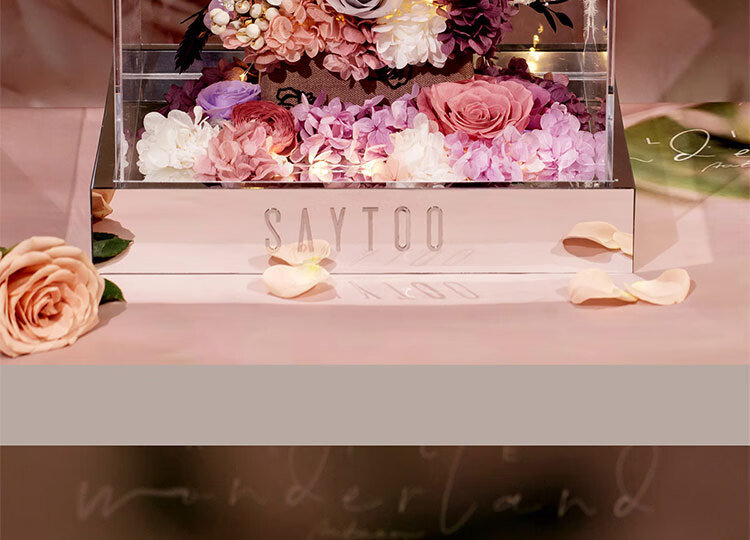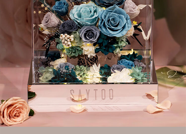 Fat Donglai's same Chinese Valentine's Day gift, a story-telling bouquet of everlasting flowers and roses for his girlfriend and wife's birthday. Chang'an Changle ~ Carnation ~ Champagne pink surrounded by atmosphere lights