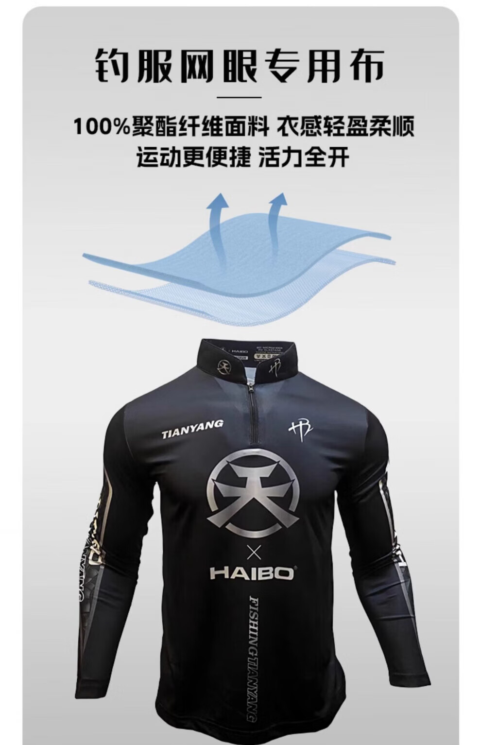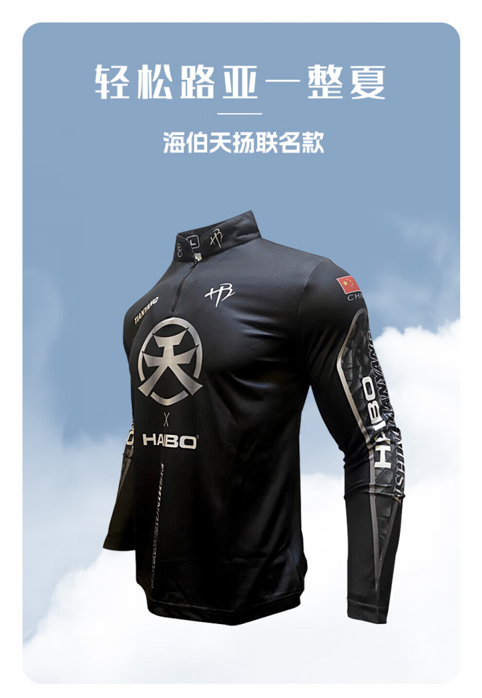 Haibo Tianyang co-branded fishing suit fishing suit Luya outdoor sun protection breathable long-sleeved fishing suit black S