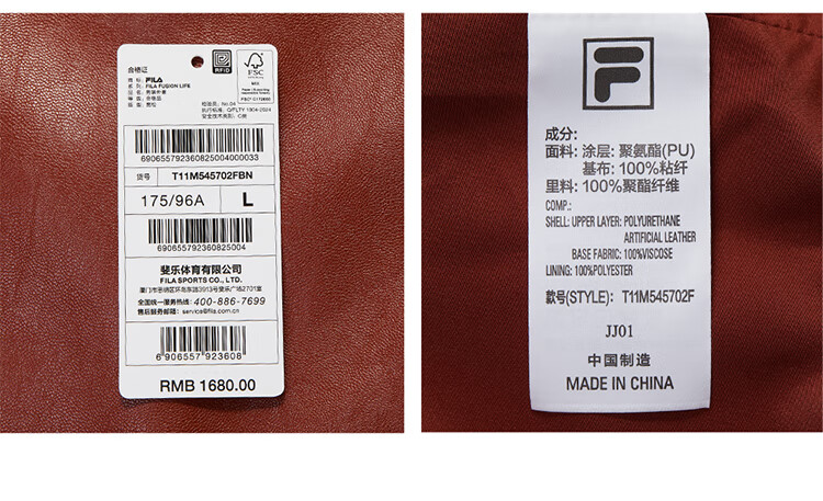 FILA FUSION same style men's jacket 2025 winter new fashion loose leather jacket black-BK XL 180/100A/XL