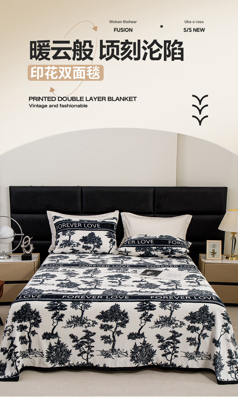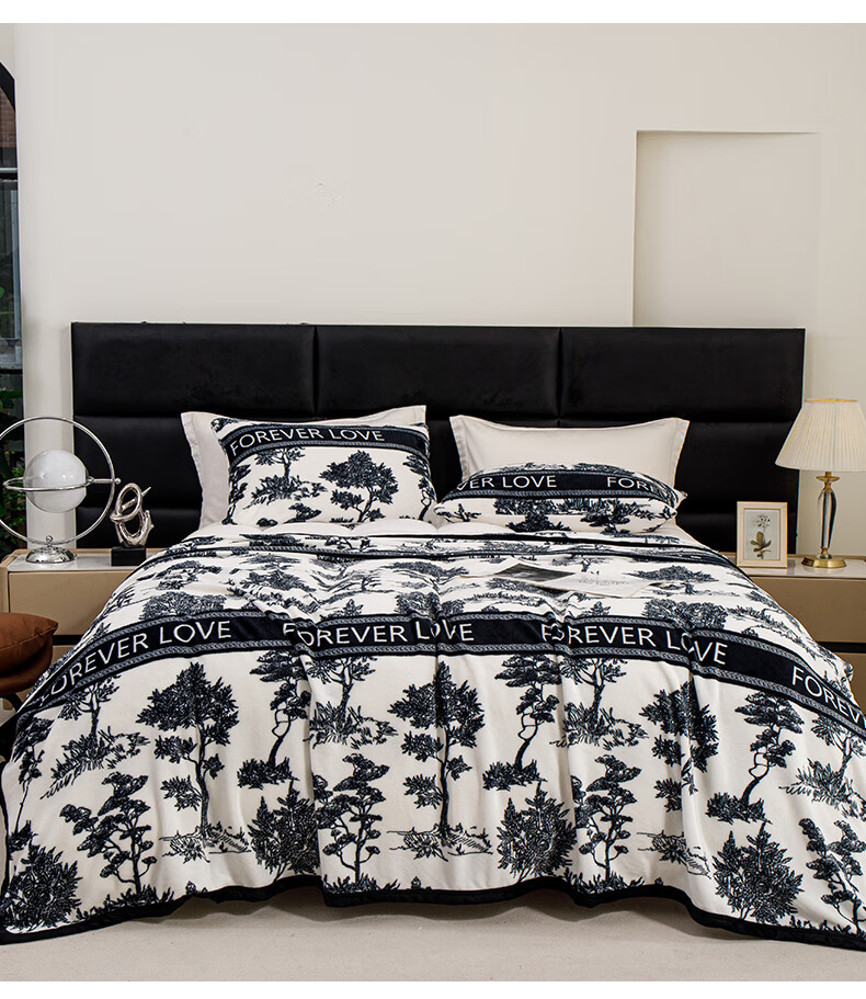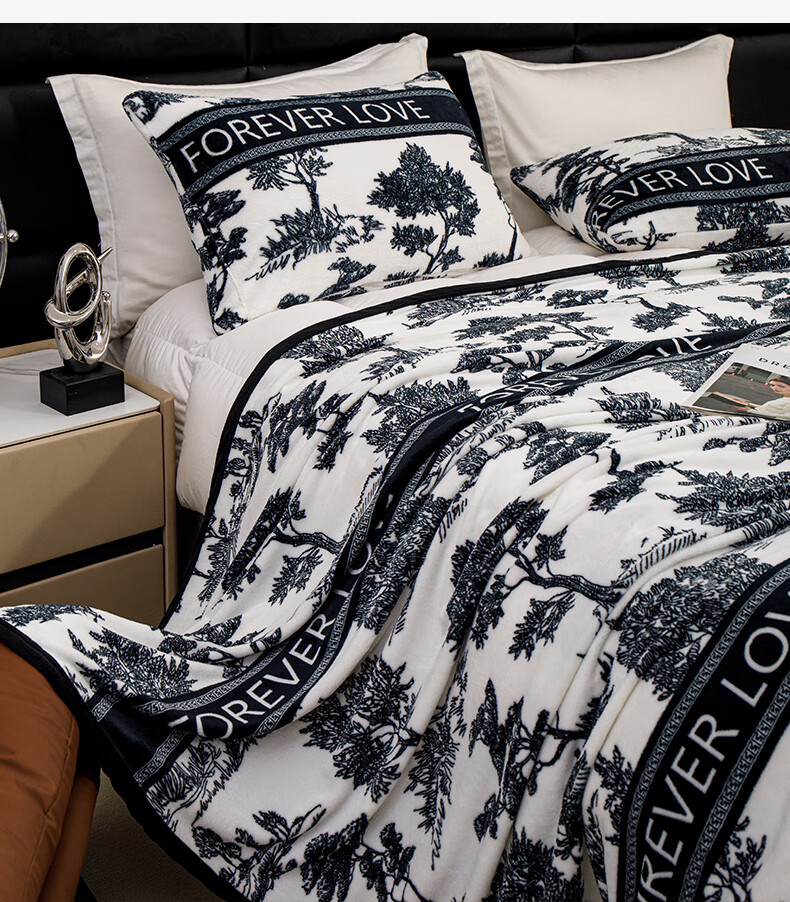 Double-sided velvet blanket quilt thickened cover blanket winter sheets dormitory single office double-layer milk velvet bed blanket ink painting 100*150cm baby blanket