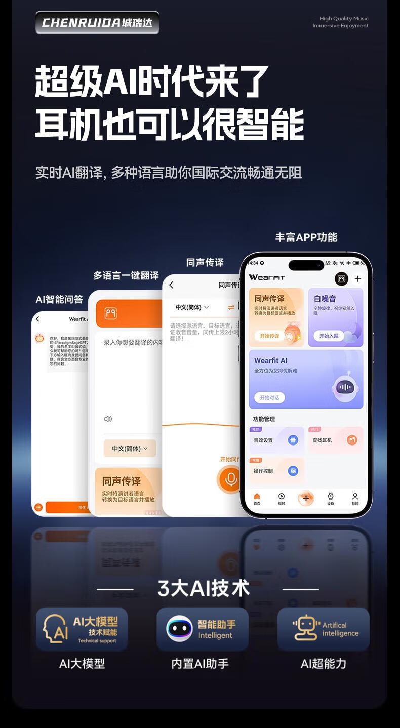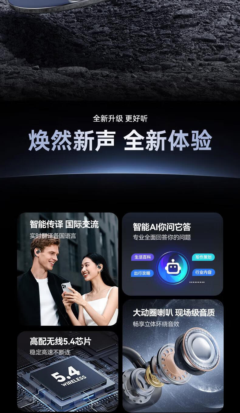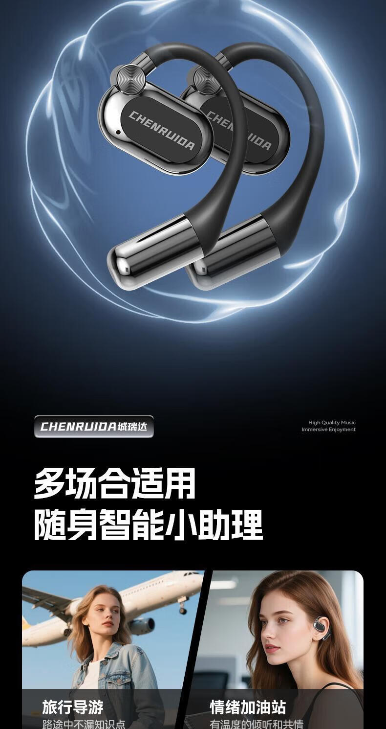 Chengruida can charge your mobile phone, Bluetooth headset, AI instant translation, top ten smart headset list, 2025 latest ultra-long battery life call noise reduction power bank earphones AI-M116-Mysterious Black | Panoramic surround sound quality / ultra-long battery life, suitable for Apple, Huawei, Xiaomi vivo oppo