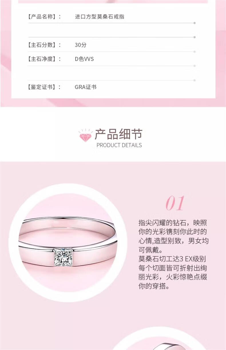 Platinum pt950 ring, imported moissanite diamond ring, D color, 30 points for male and female couples, wedding proposal, engagement gift for boyfriend, light luxury style - simple square female ring - light gift box, live style, adjustable