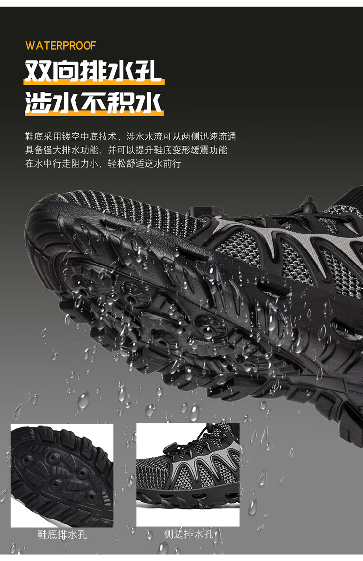 GPHF Japanese outdoor hiking shoes for men, women's quick-drying outdoor shoes, non-slip summer breathable climbing and fishing shoes, black 2238 with side drainage holes 40